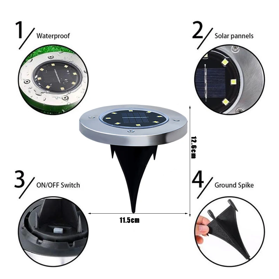 Светодиодные уличные лампы на солнечной батарее, водонепроницаемые декоративные светильник довые светильники на солнечной батарее для газона, двора, лужайки, патио, Плаза, 4 шт., 81216 светодиодный