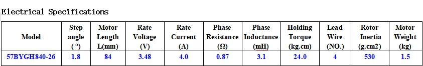 1. Nema 23 шаговый двигатель 57BYGH840-26 с 84 мм длиной тела 2.4N.M = 340OZ-INОдиночный плоский Вал