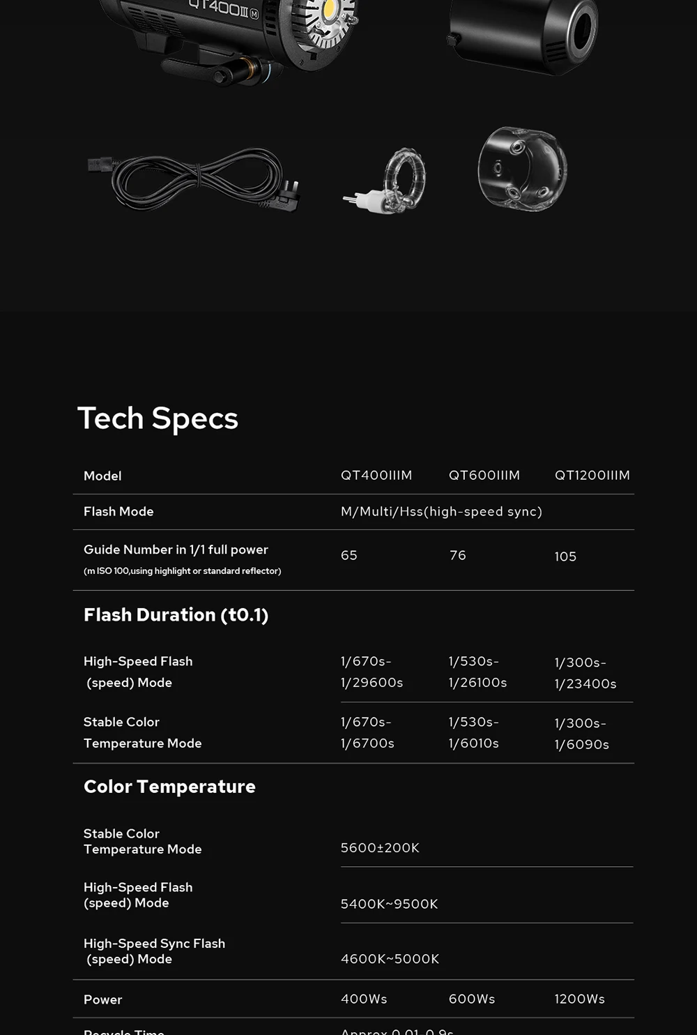 Godox QT600III QT600IIIM 600W 18000s высокоскоростная студийная вспышка стробоскоп со встроенной беспроводной системой 2,4G + светодиодная лампа 40W