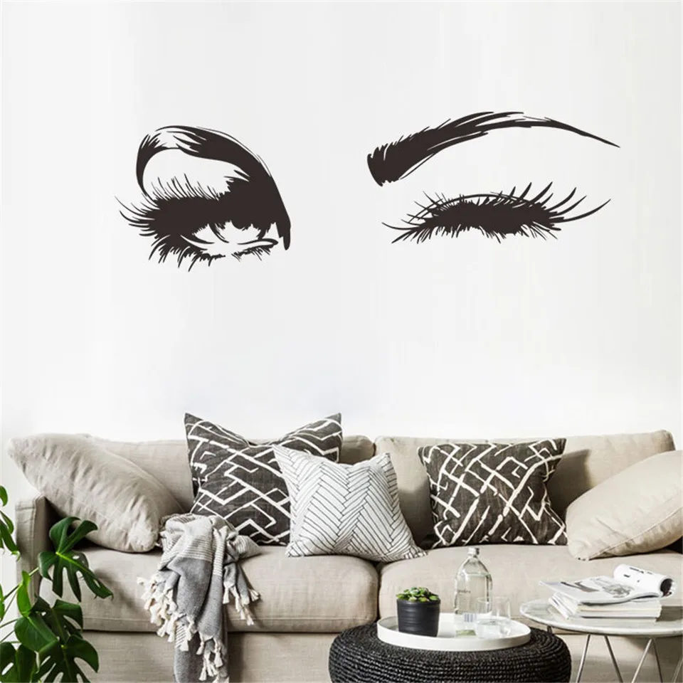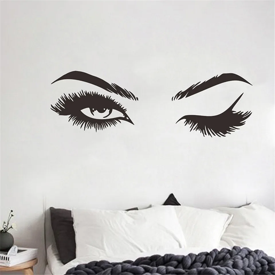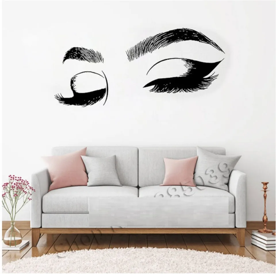 Закрытого типа с принтом "большие глаза" стены Стикеры Красота магазин украшения ресницы брови наклейка самоклеящиеся съемные обои сделай сам ПВХ росписи
