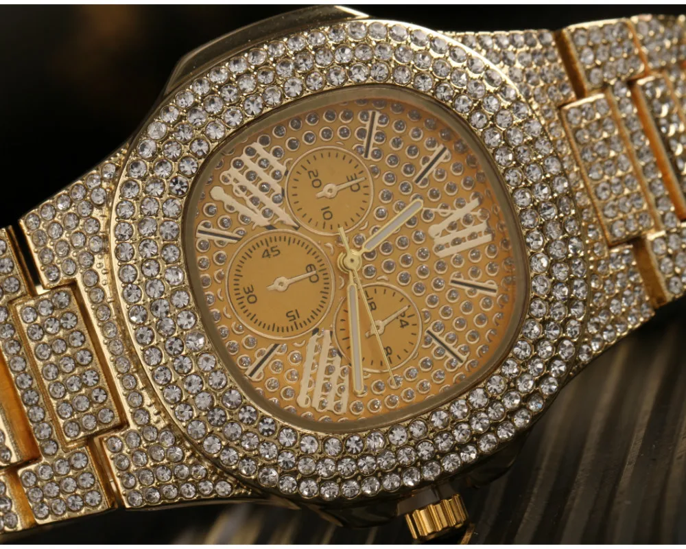 Роскошные мужские часы золотого и серебряного цвета в стиле хип-хоп...
