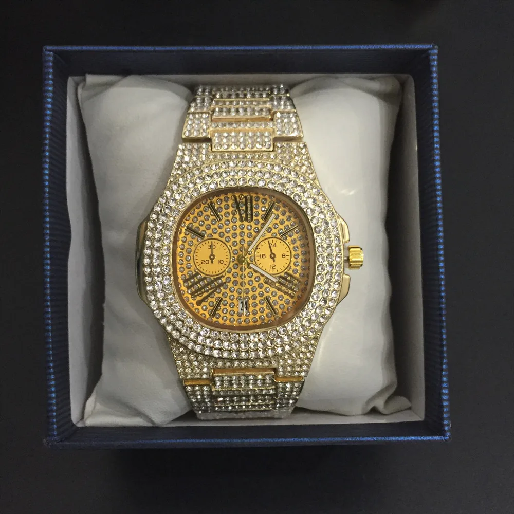 Роскошные мужские часы золотого цвета в стиле хип-хоп, мужские ожер...