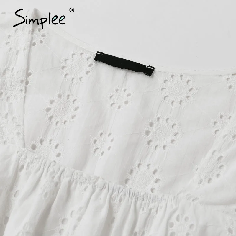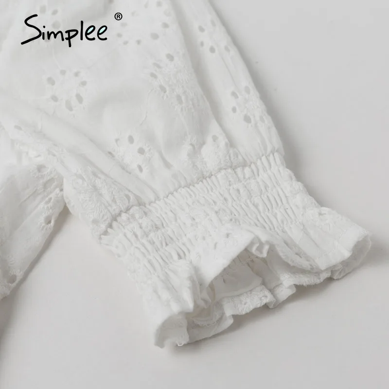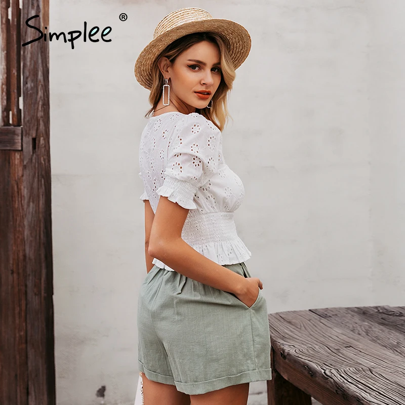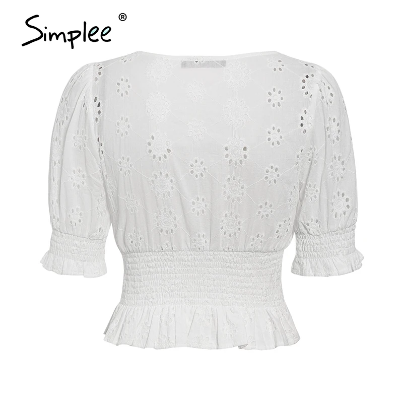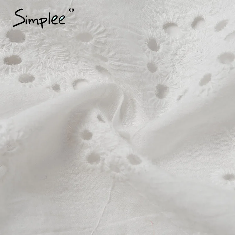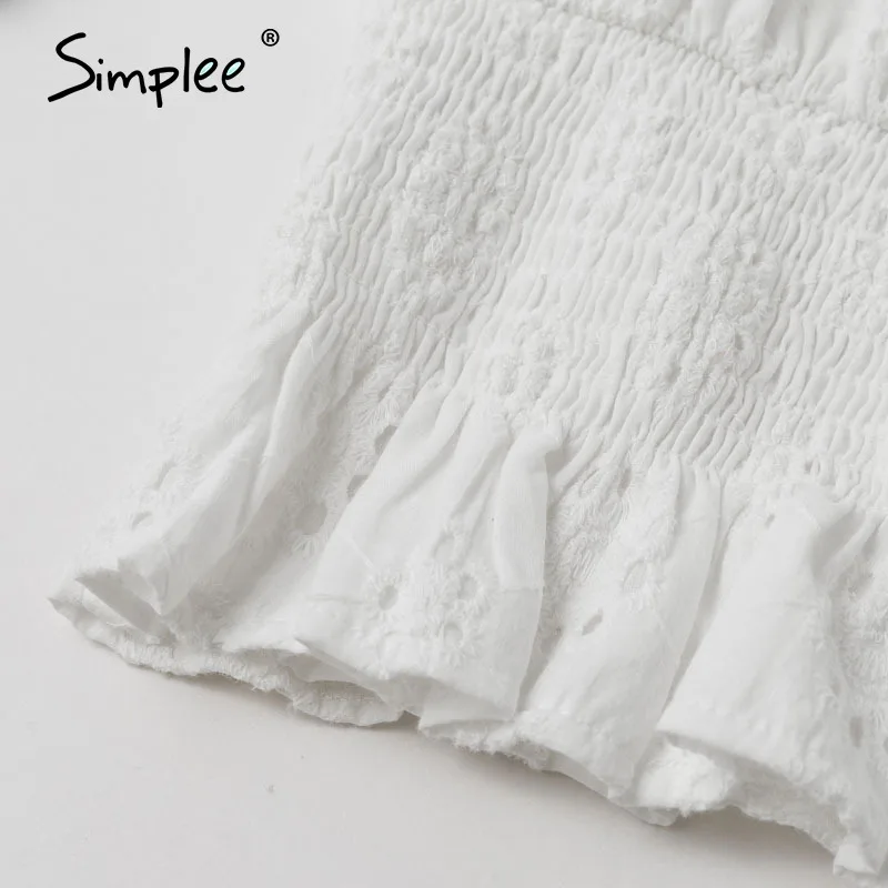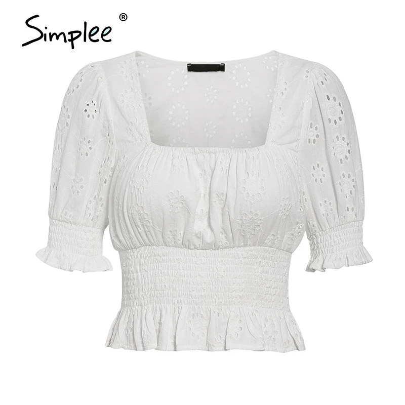 Женская винтажная блузка с вышивкой Simplee, белая короткая блузка с квадратным вырезом, с вырезами