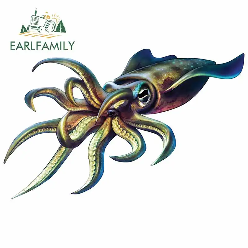 EARLFAMILY мультяшная наклейка на автомобиль, наклейка с кальмаром, наклейка для дикой природы, природы, охоты, лагеря, художественная наклейка, виниловое украшение для стайлинга автомобиля