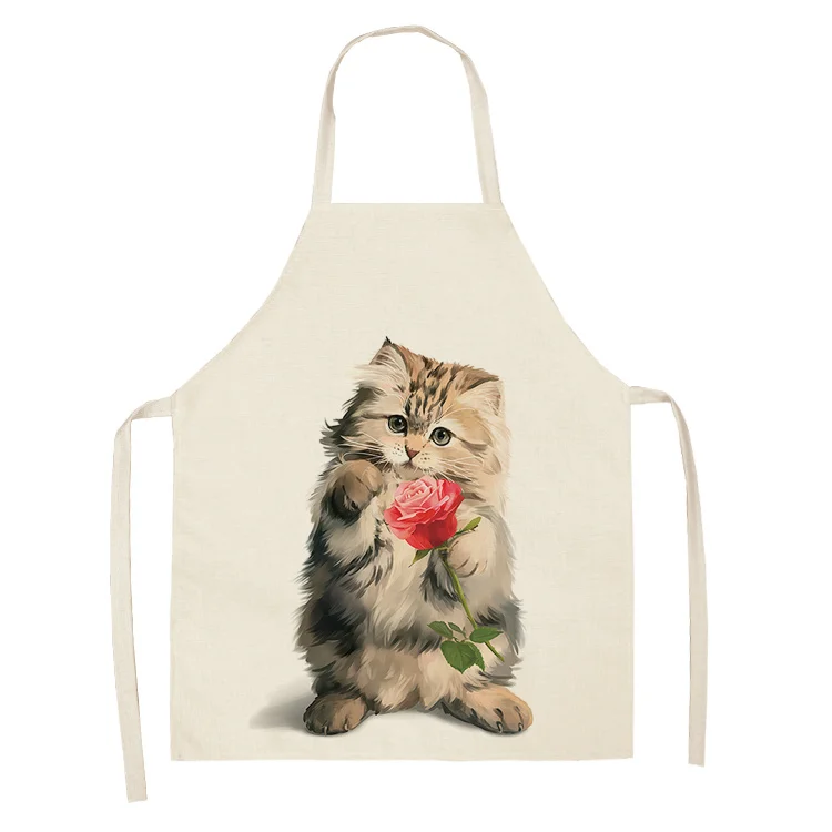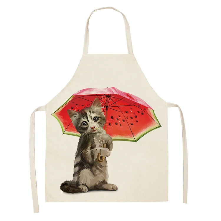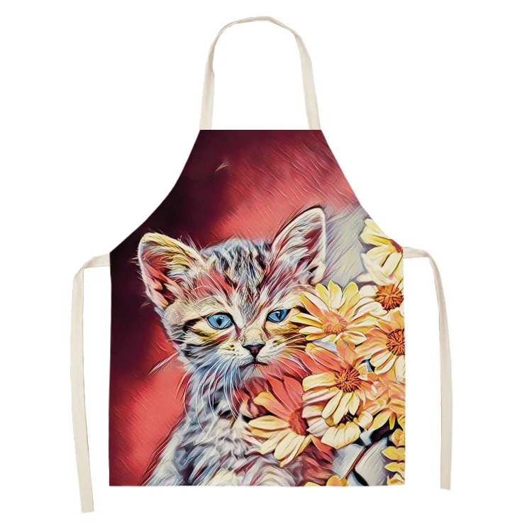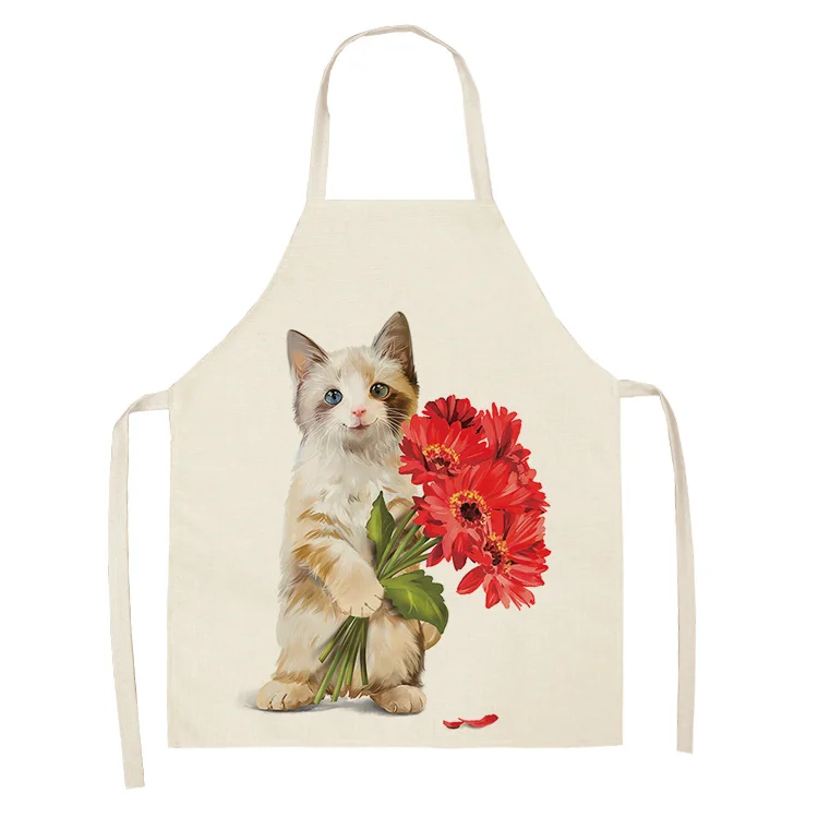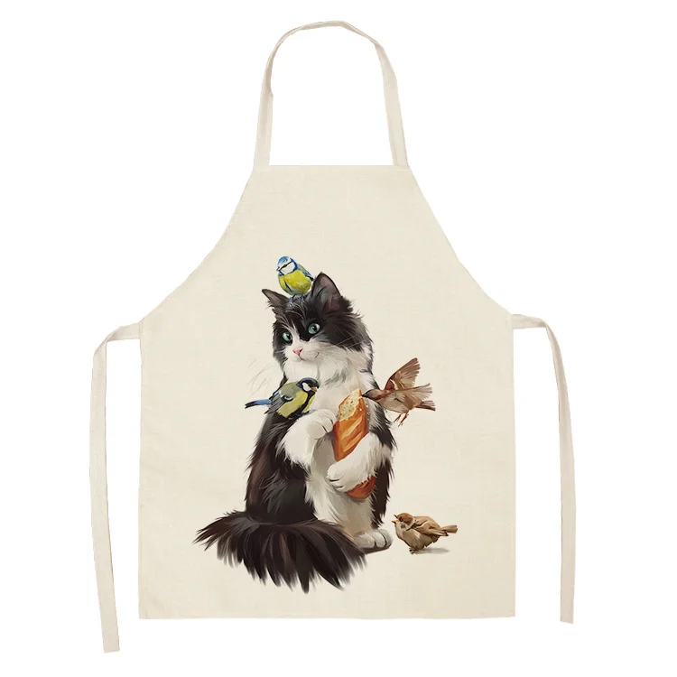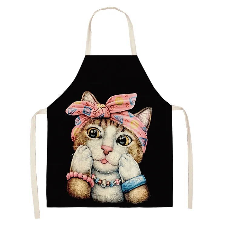 Милый Кот кухня безрукавные фартуки для женщин из хлопка и льна нагрудники уборка дома передник для домашней кухни фартук 53*65 см WQL0200