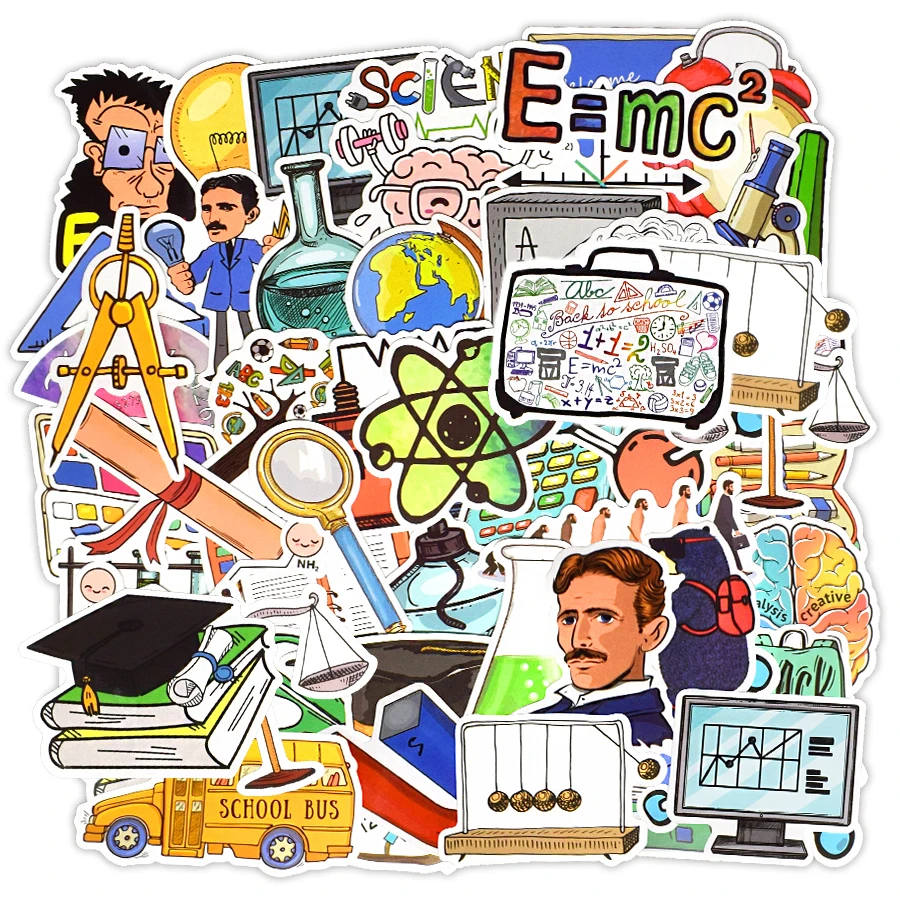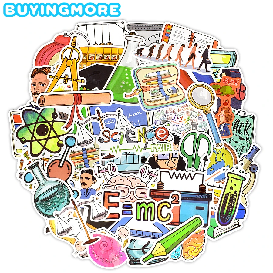 50 шт. наклейки на тему науки вернуться в школу лаборатория творческие Мультяшные наклейки для студентов друзей самодельный ноутбук пенал велосипед