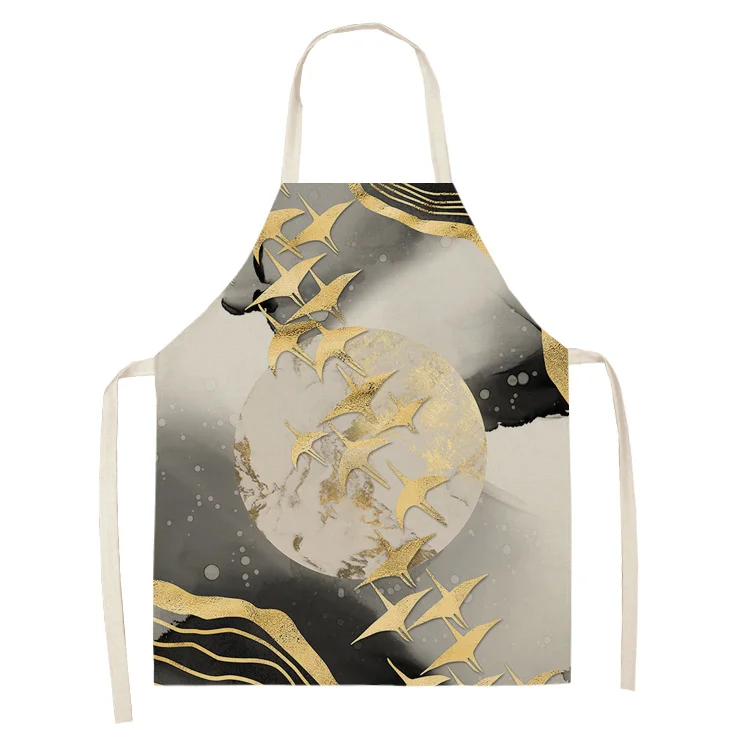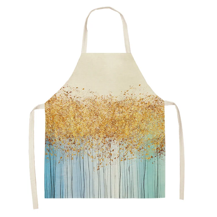 Фартук Кухонный женский с золотым оленем и бабочкой, хлопковый льняной нагрудник, передник для домашней уборки, фартук для готовки, 53*65 см, WQL0190