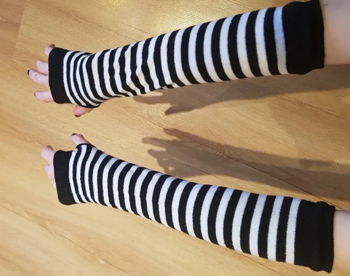 1 пара, длинные перчатки без пальцев, хлопок, классический браслет, рукав, полосатые мягкие митенки, вязаные налокотники для женщин и девочек