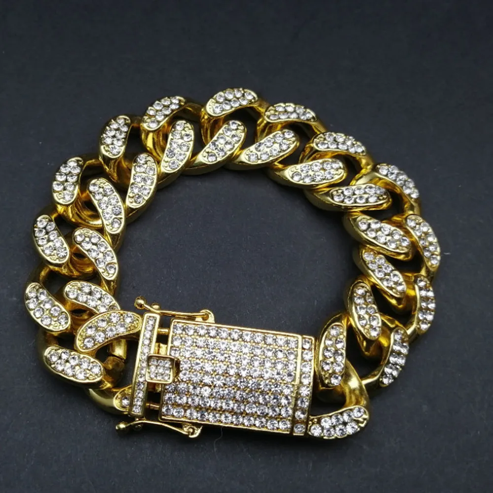 Роскошные мужские часы золотого цвета, ожерелье, браслет и кольцо, комплект из кубинской часы со льдом, хип-хоп в кристаллах, комплект ювелирных изделий для мужчин