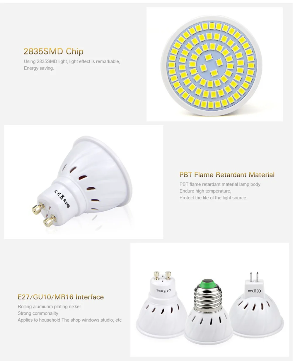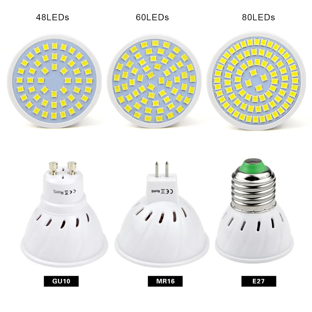 E14 27 Светодиодный лампы GU10 светодиодный светильник 220V SMD 2835 MR16 Прожектор 80 светодиодный s теплый белый холодный белый настенные светильники для домашнего украшения ампулы