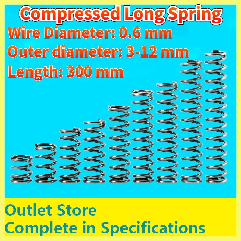 Сжатый длинные весенние Давление Длинные Весна наличные деньги продажа Линия Диаметр 0,6 мм, внешняя Диаметр 3-12 мм, Длина 300 мм возвратная пружина