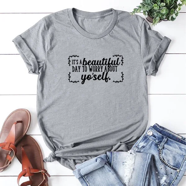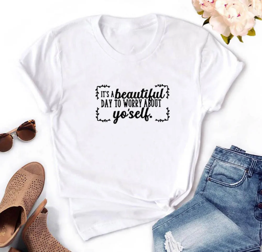 Женская хлопковая футболка с коротким рукавом It's A Beautiful Day To Take about Yo'self, забавная женская футболка с круглым вырезом, Женская Повседневная футболка