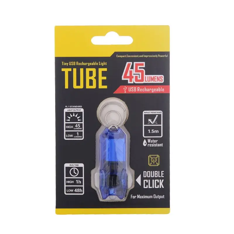 Миниатюрный светодиодный фонарик с брелоком, электрический портативный Перезаряжаемый фонарь с USB-зарядкой и 2 режимами для ночного чтения и кемпинга, 45 лм