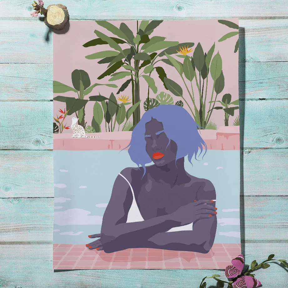 Абстрактная Мода Девушка Лето читать лестница отдых стены искусства...