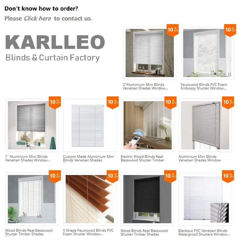 Мы (Karlleo) напрямую с завода! Мы (Karlleo) специализируемся на изготовлении жалюзи по индивидуальному заказу и продаем на рынке северной америки! Мы (Karlleo) продаем онлайн более 7 лет! Минимальный заказ: только 1 квадратный метр Большая скидка при заказе более 1 квадратного метра!