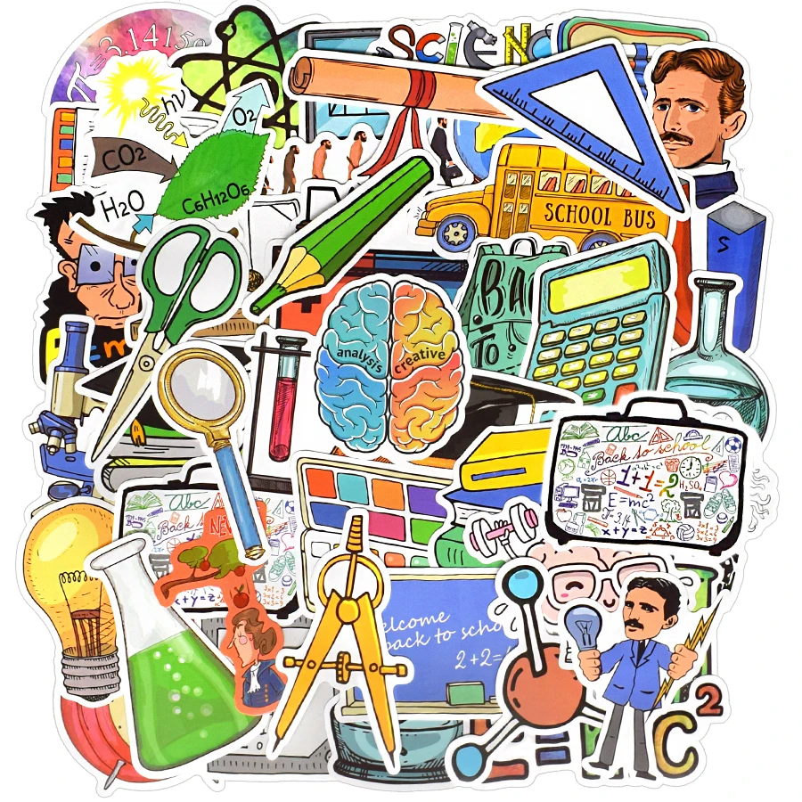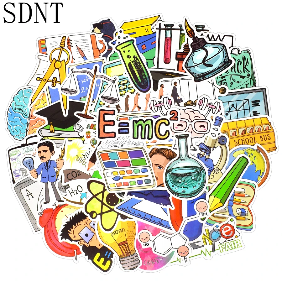 50 шт., школьные Science наклейки, термины, начинаются, класс, лаборатория, креативные водонепроницаемые наклейки для студентов, сделай сам, пенал, ноутбук, велосипед