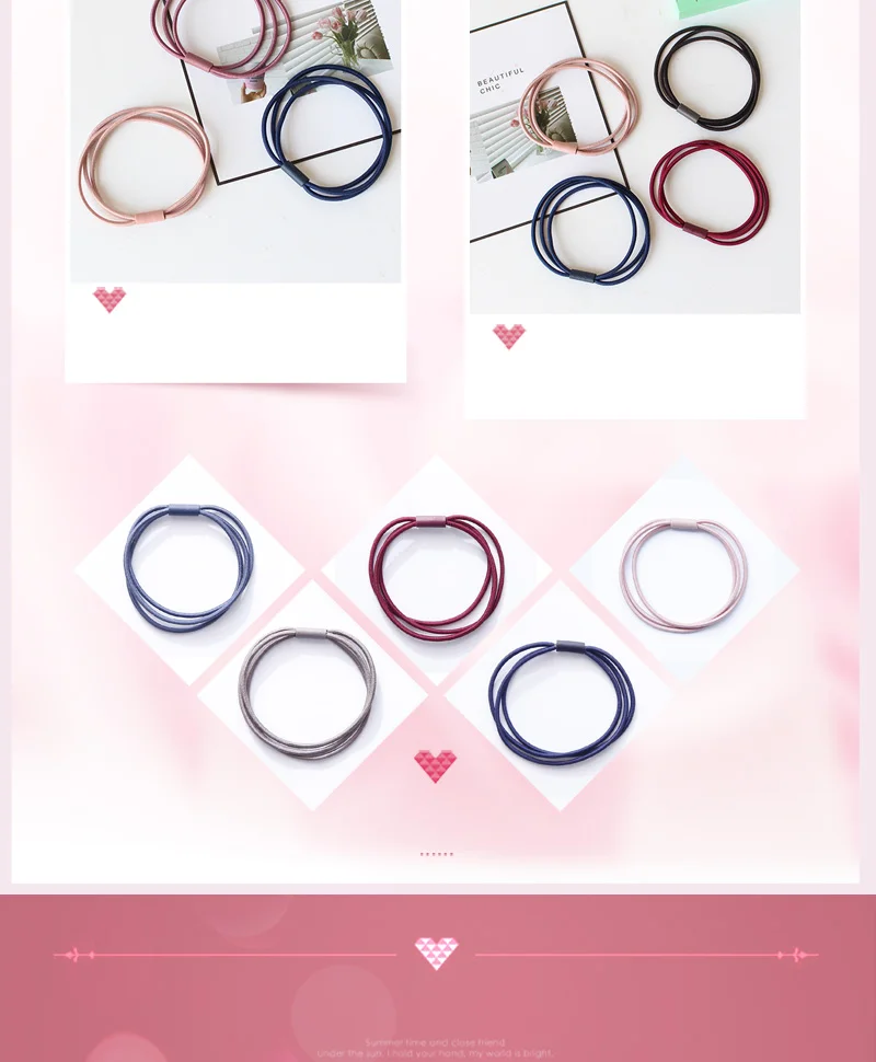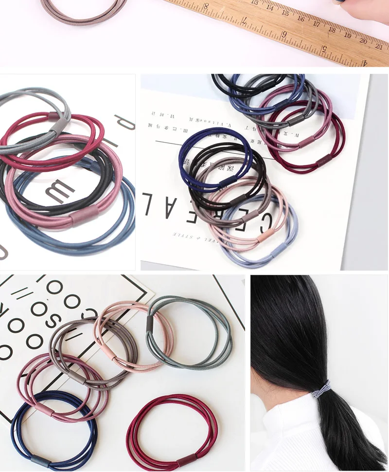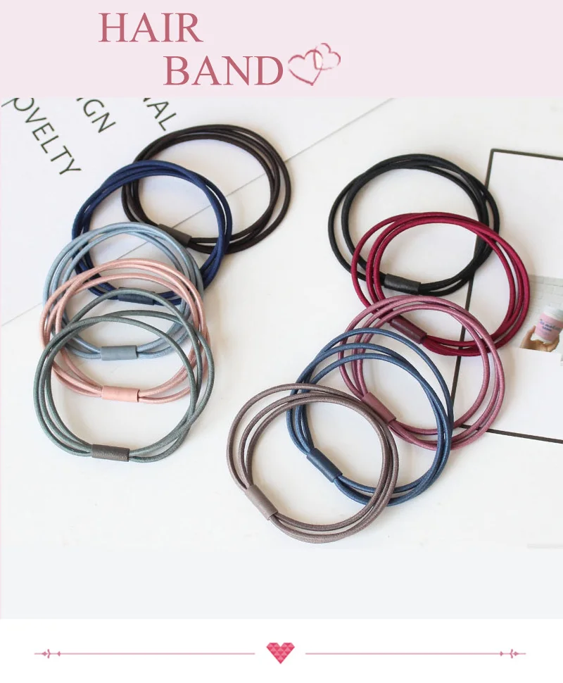 Резинки для волос, трехслойные, однотонные, 5 шт.лот