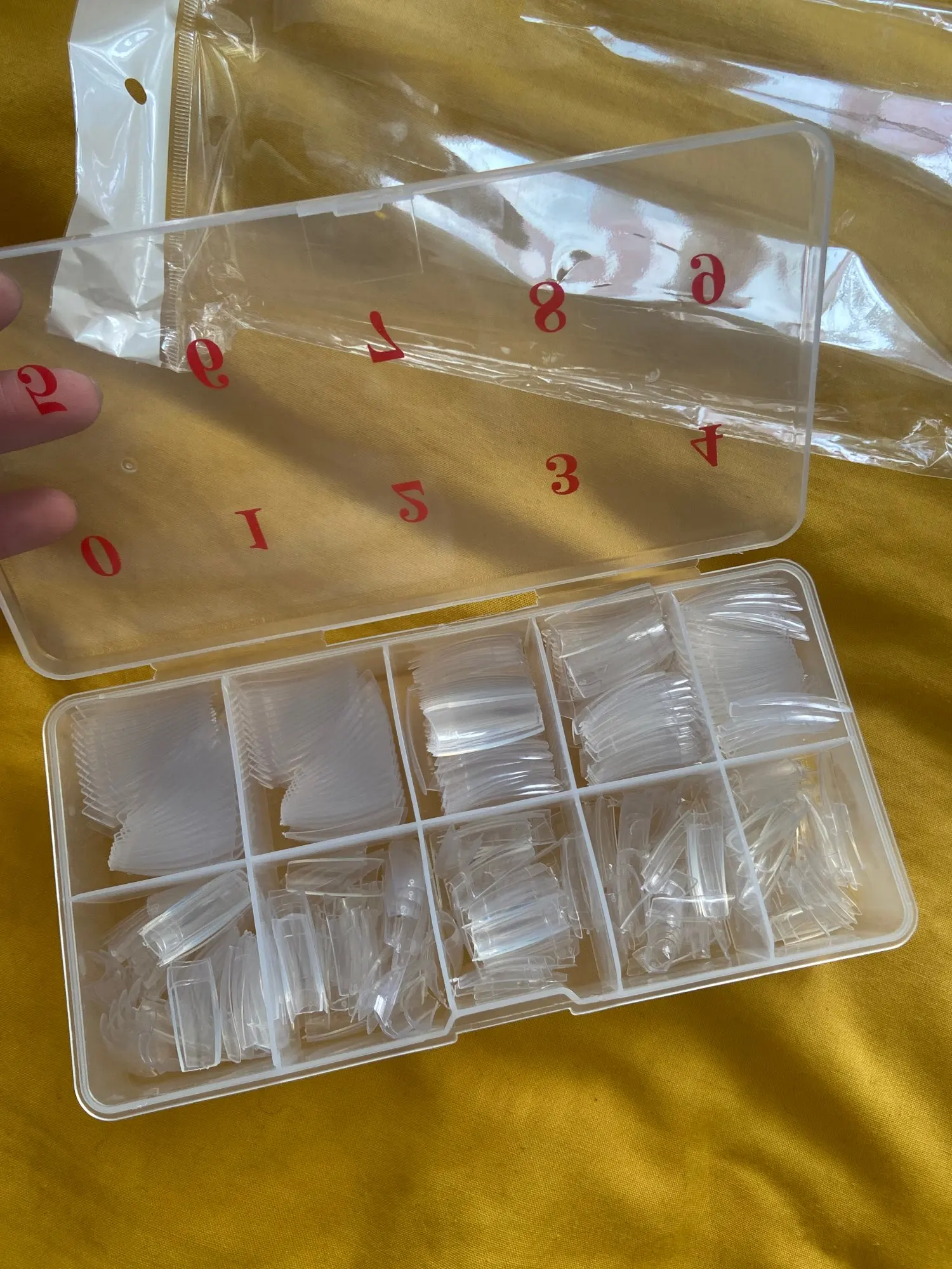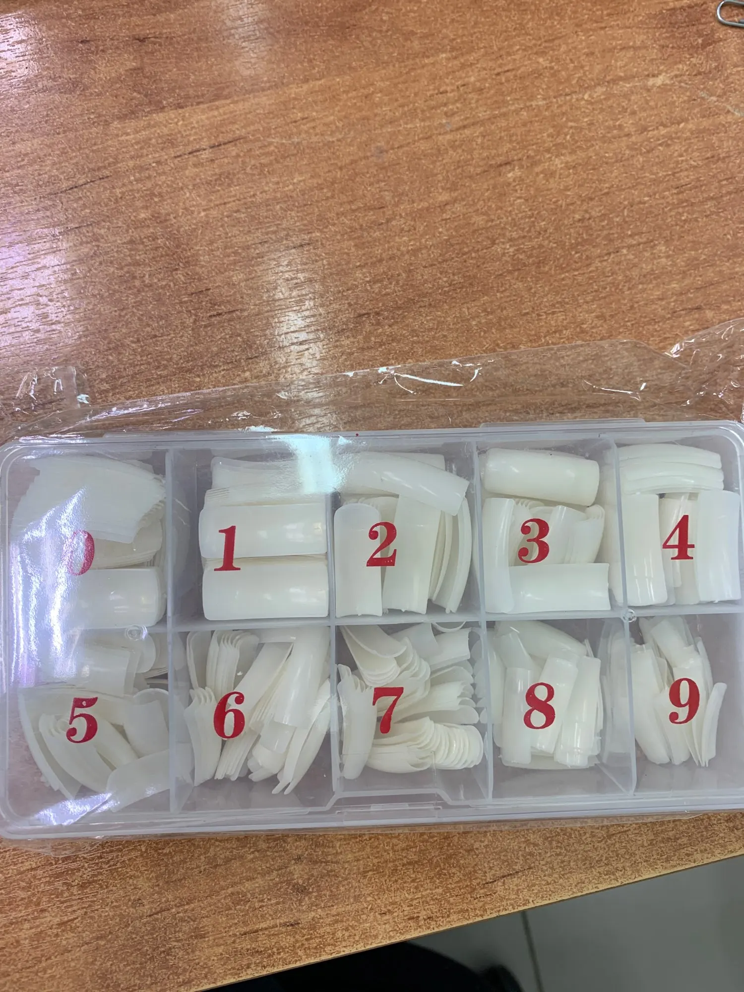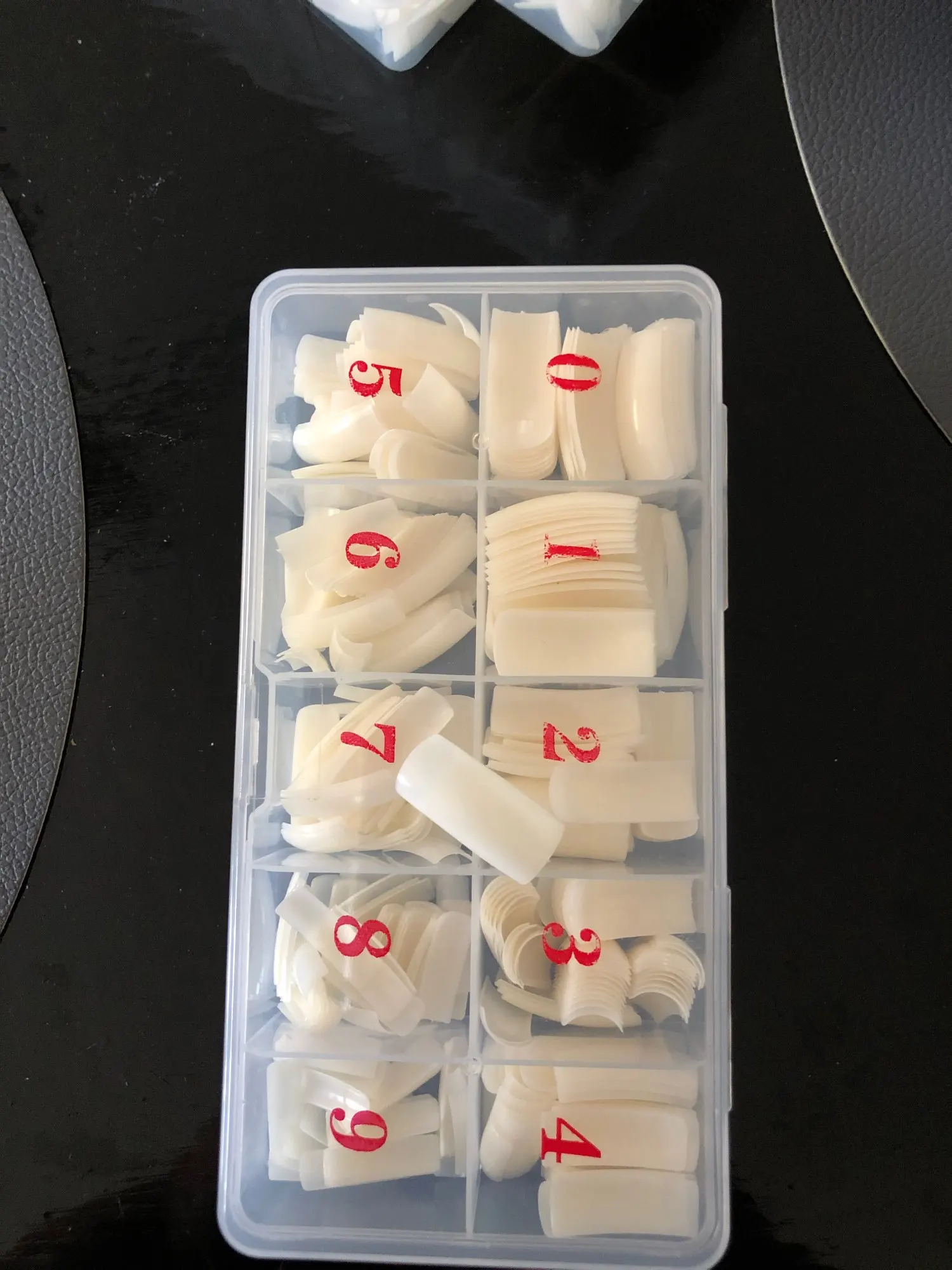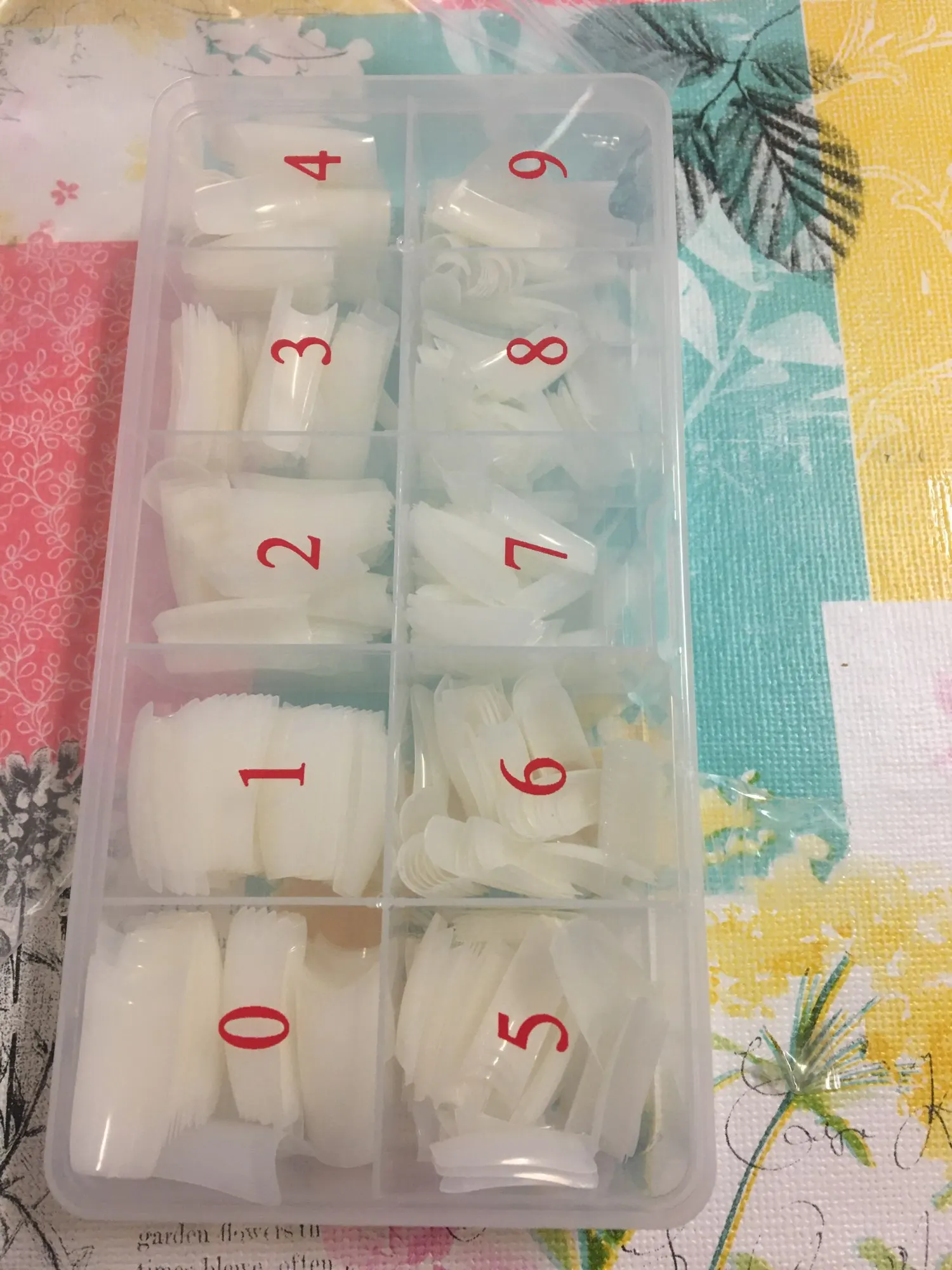 Я сделал несколько продуктов: -500 шт. прозрачных французских топов. Хороший размер и прочность. Я рекомендую -Балерины в капсулах 100 шт. с другой стороны не очень хороши: они очень большие, даже самый маленький размер не подходит для маленьких пальцев. Я жду, чтобы увидеть, что я могу сделать продавцу в коммерческом жесте