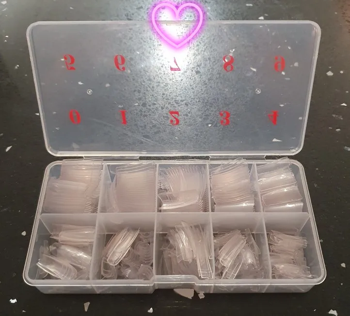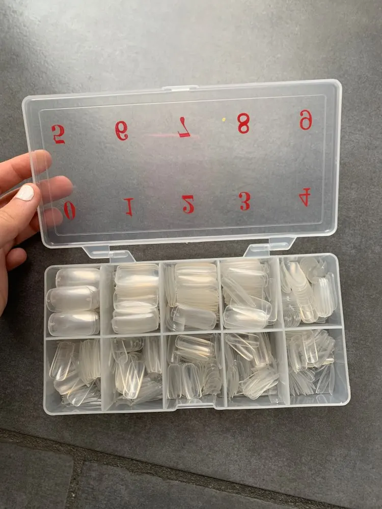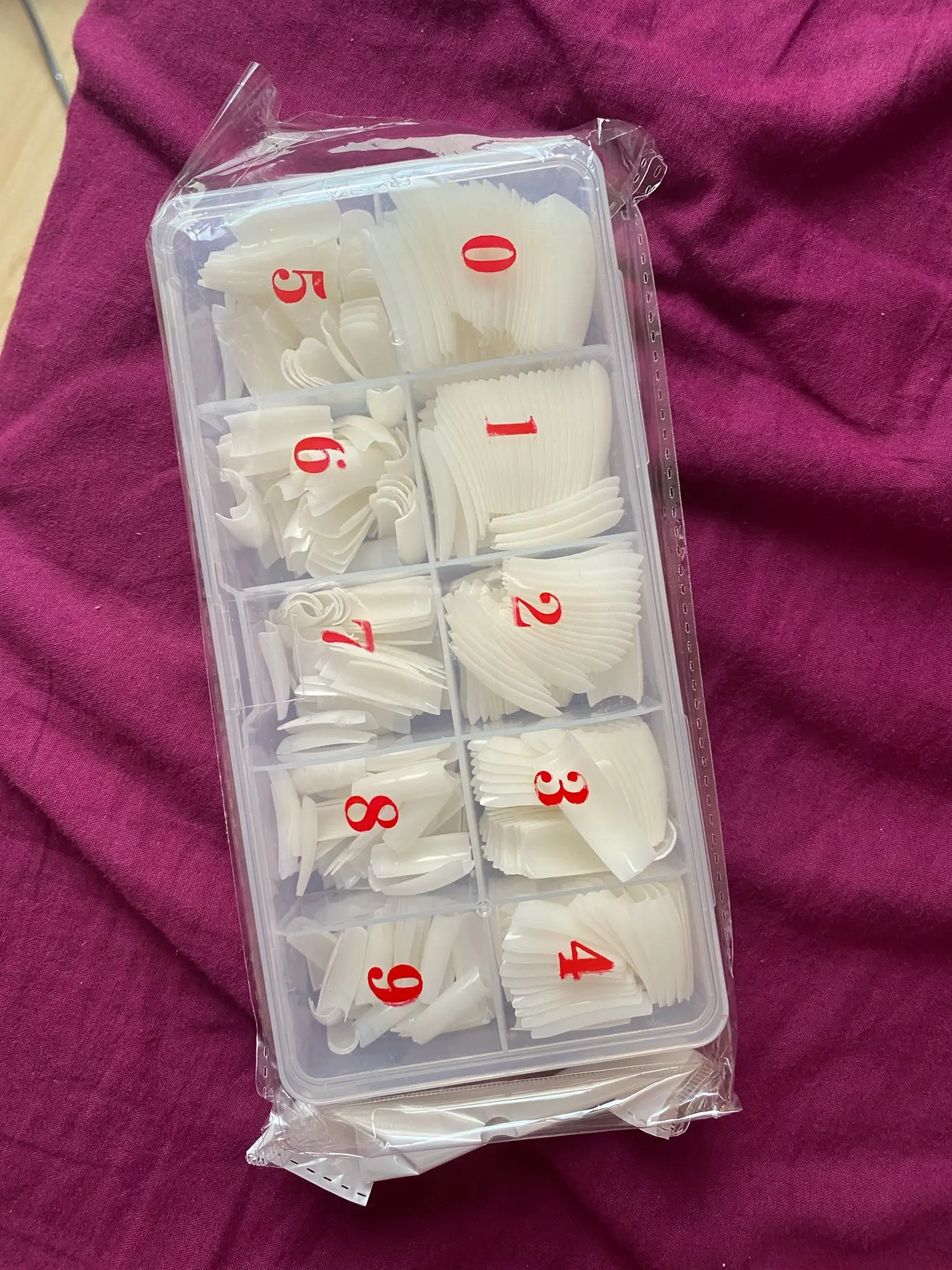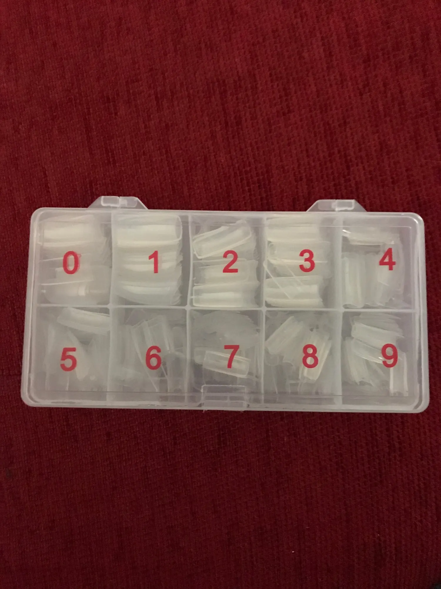 Я сделал несколько продуктов: -500 шт. прозрачных французских топов. Хороший размер и прочность. Я рекомендую -Балерины в капсулах 100 шт. с другой стороны не очень хороши: они очень большие, даже самый маленький размер не подходит для маленьких пальцев. Я жду, чтобы увидеть, что я могу сделать продавцу в коммерческом жесте
