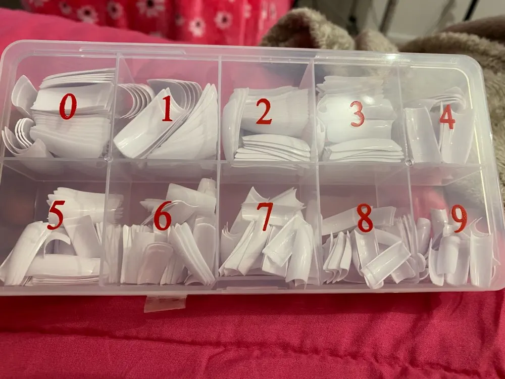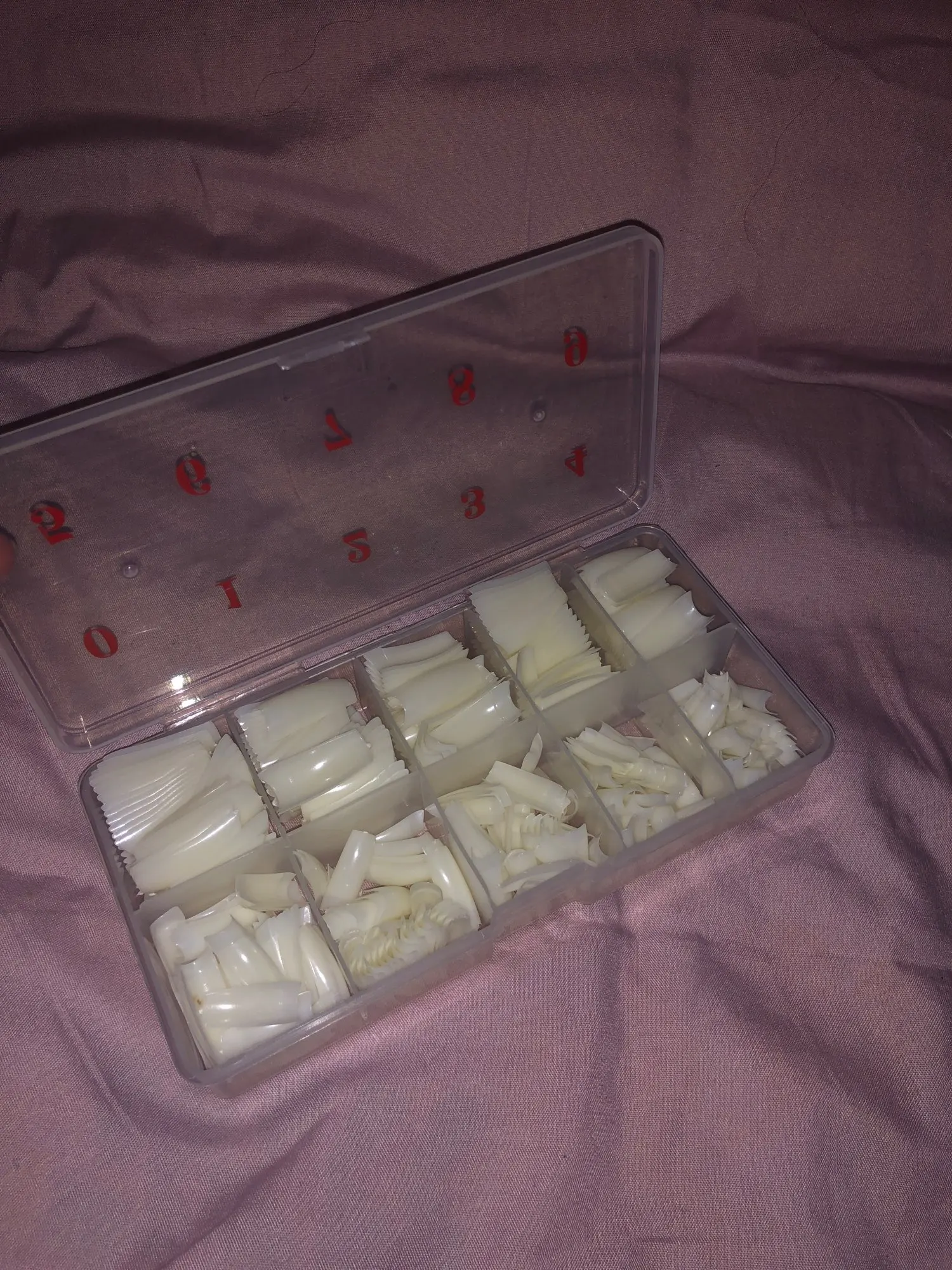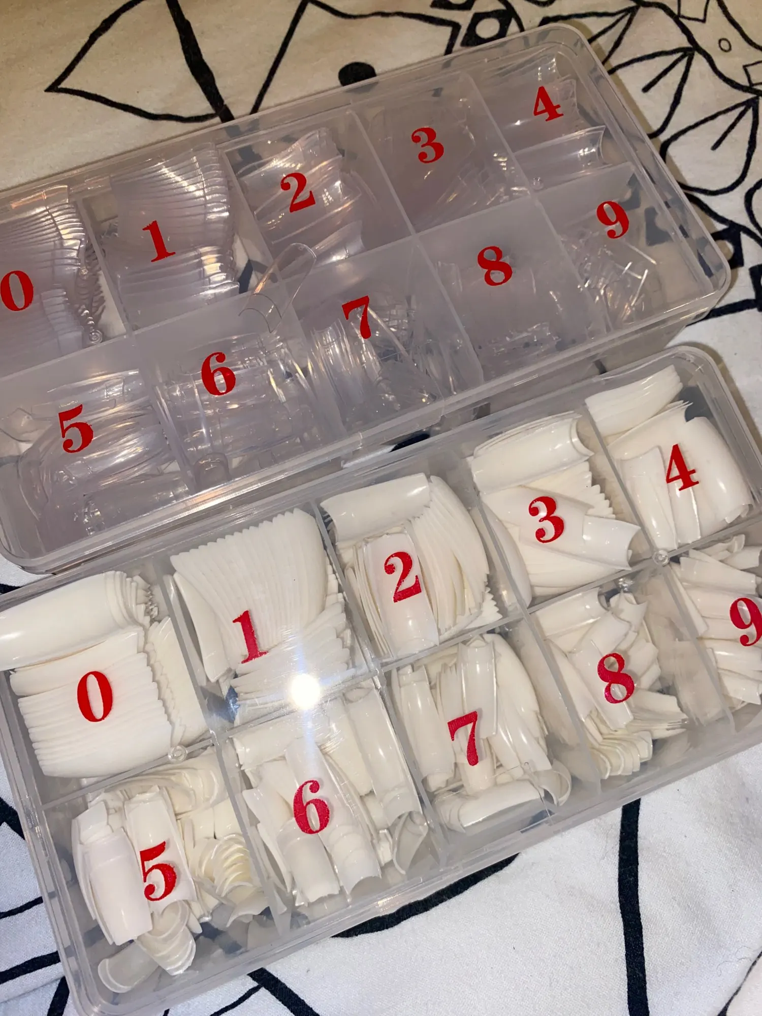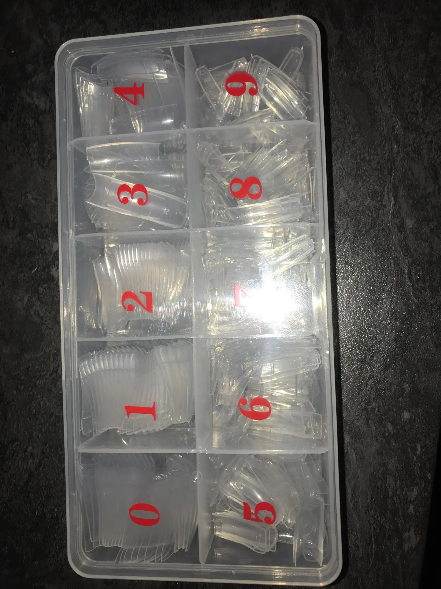 Я сделал несколько продуктов: -500 шт. прозрачных французских топов. Хороший размер и прочность. Я рекомендую -Балерины в капсулах 100 шт. с другой стороны не очень хороши: они очень большие, даже самый маленький размер не подходит для маленьких пальцев. Я жду, чтобы увидеть, что я могу сделать продавцу в коммерческом жесте