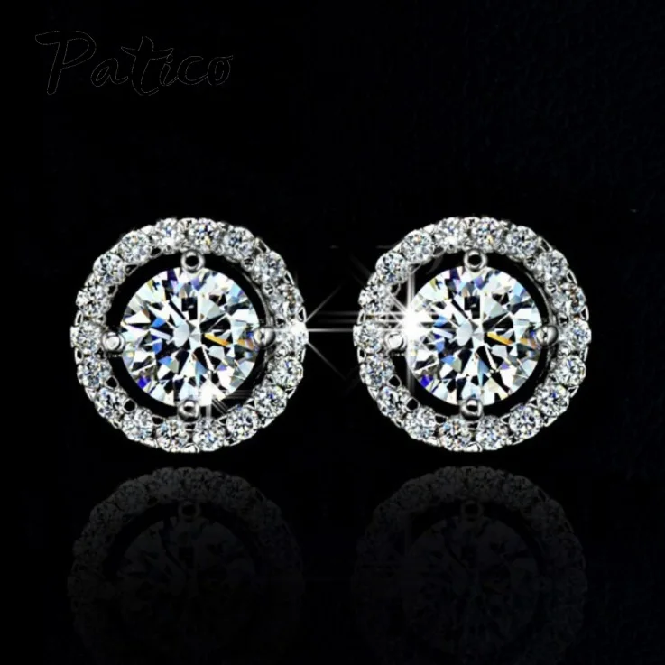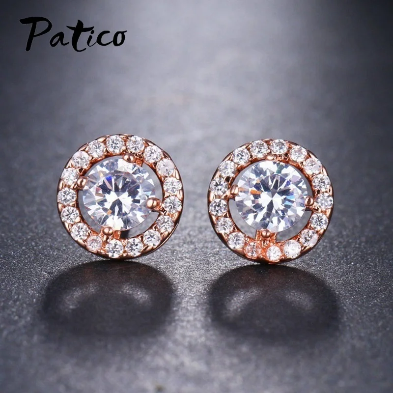 Роскошные женские серьги-гвоздики из стерлингового серебра 925 пробы с кристаллами белого циркония простые круглые серьги розового золота модные свадебные украшения