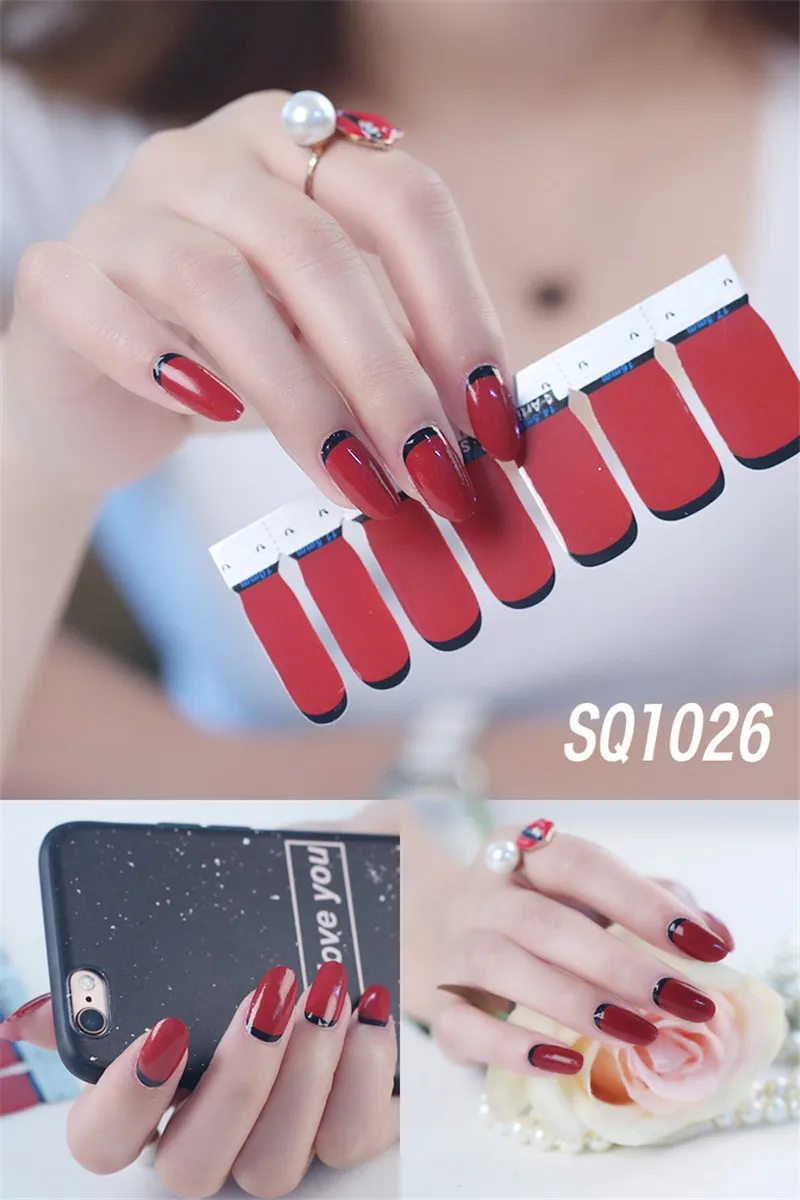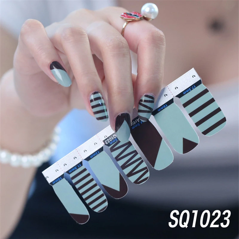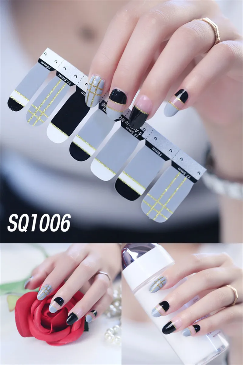 1sheet Korean Nail Polish Strips DIY Waterproof Nail Wraps Mixed Patterns Full Nail Patch Adhesive for Women Nail Art Stickers