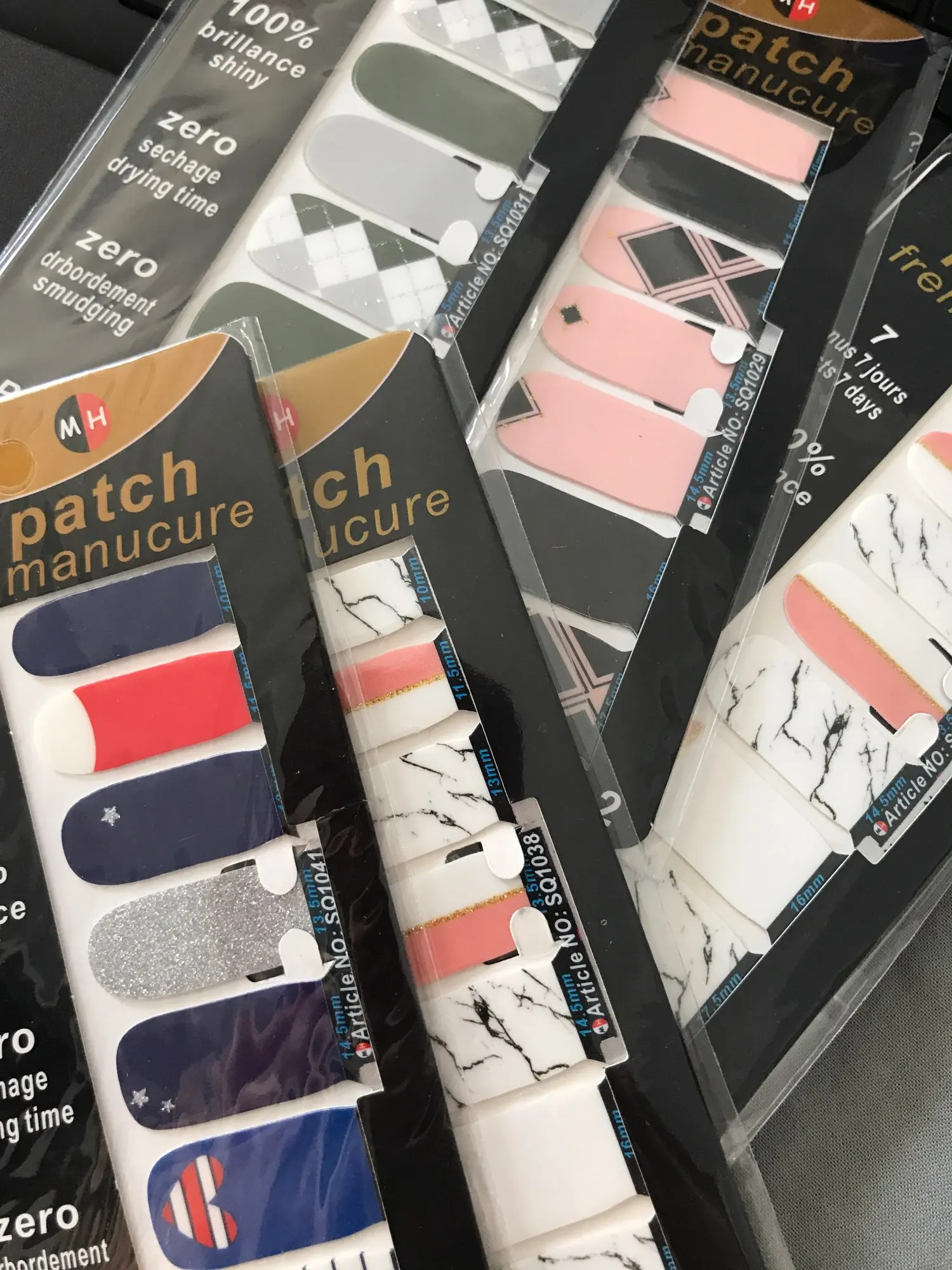 Брала разноцветные наклейки с разными узорами. Отлично подходят для широкого ногтя. Без проблем продержались 2 недели (убиралась и мыла посуду как обычный человек)) Очень довольна