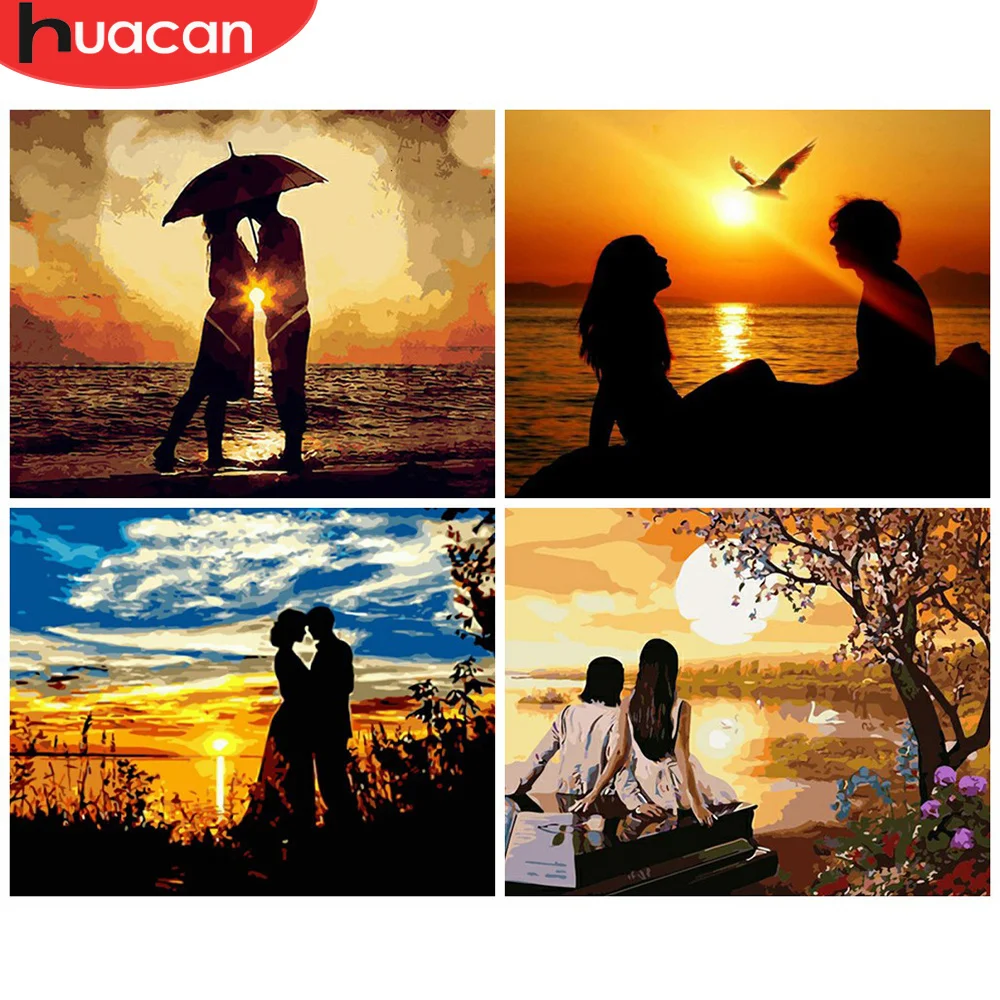 HUACAN картина по номерам влюбленные ручная роспись картинки по цифрам закат на холсте украшение дома DIY подарок настенная живопись