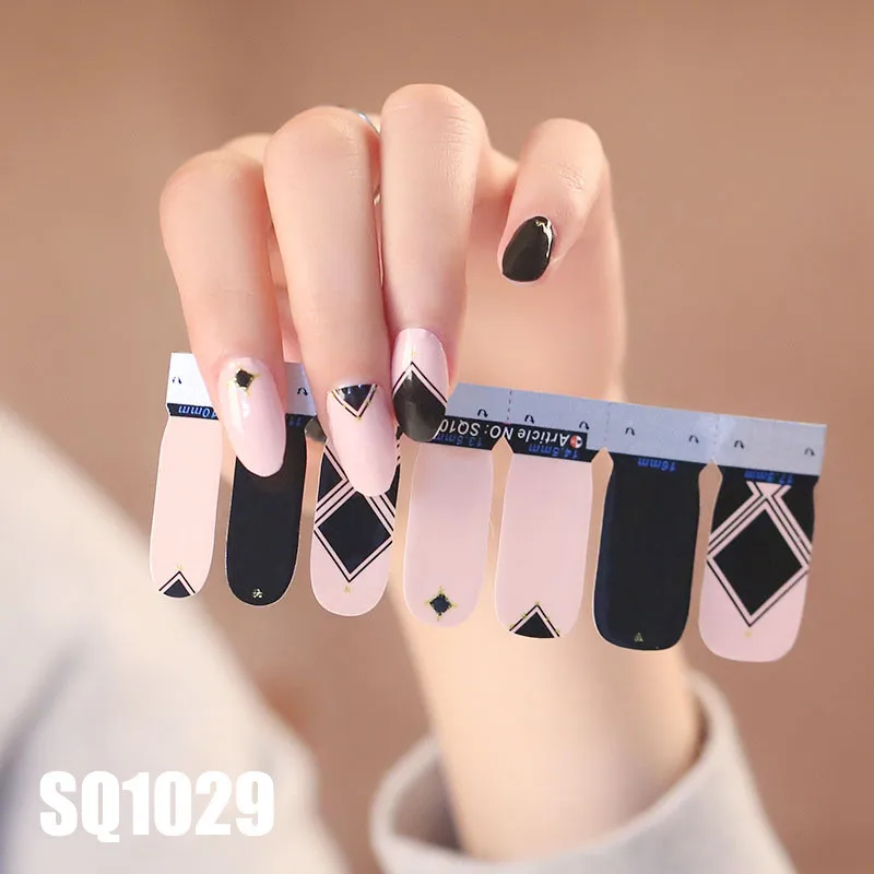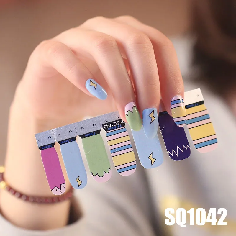 14 наконечников, серия SQ, самоклеящиеся наклейки для дизайна ногтей, полировка, фольга, карамельные цвета, геометрические мраморные обертывания, украшение для маникюра