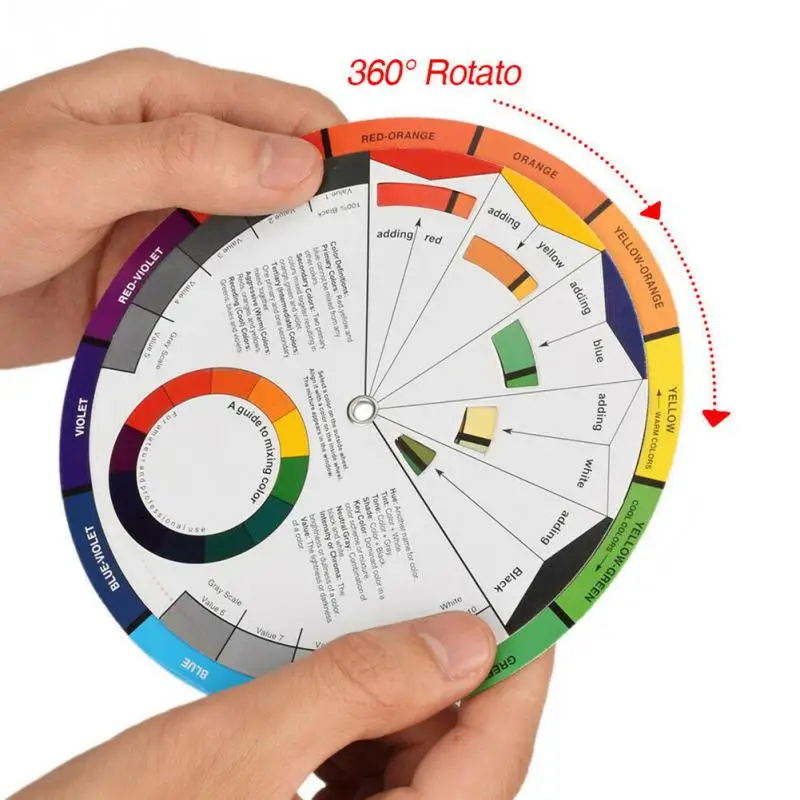 Карточка для смешивания для салона, вращающаяся карточка для пигмента с цветными колесами, мини-инструмент, портативный профессиональный Палетка для тату и геля для ногтей на 360 градусов