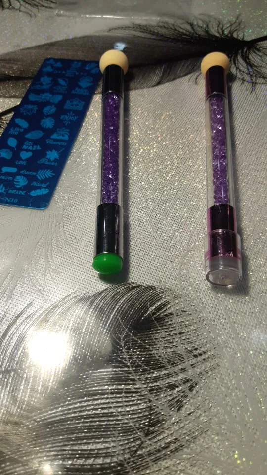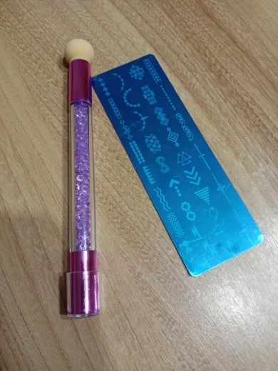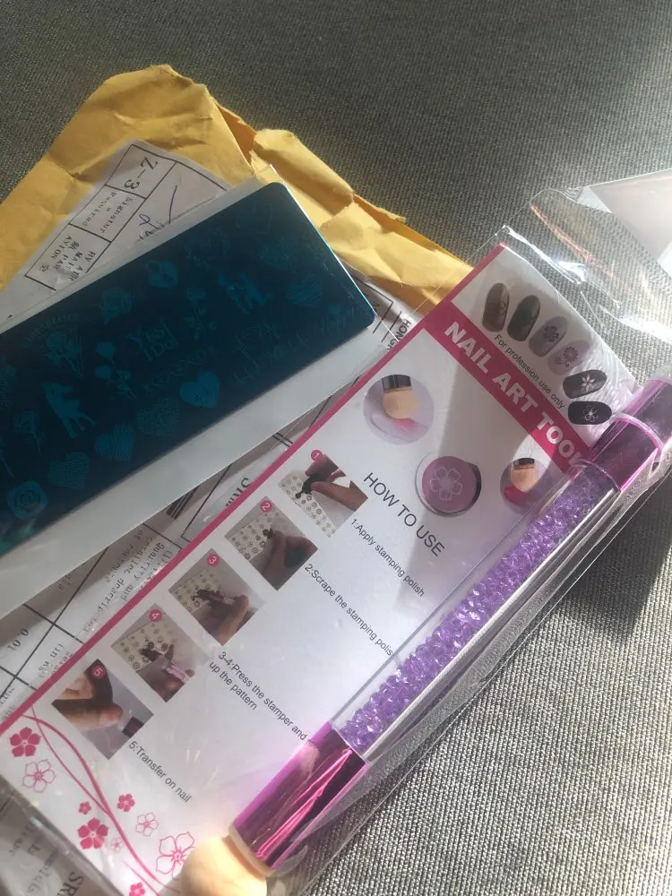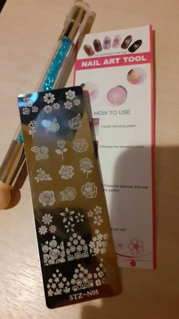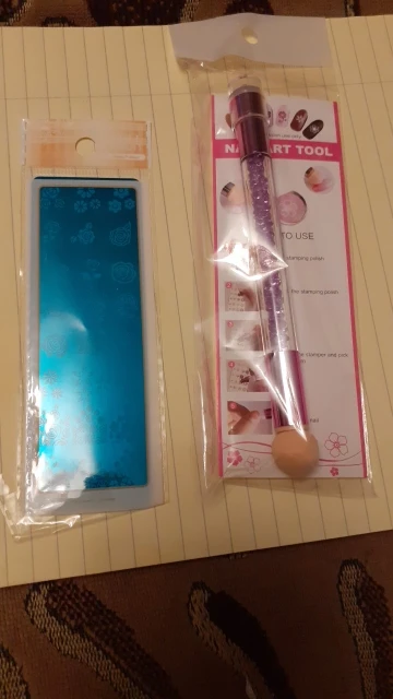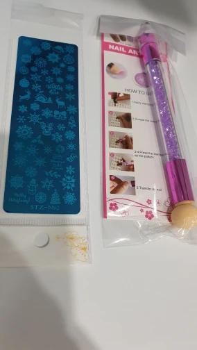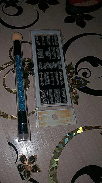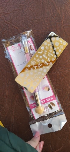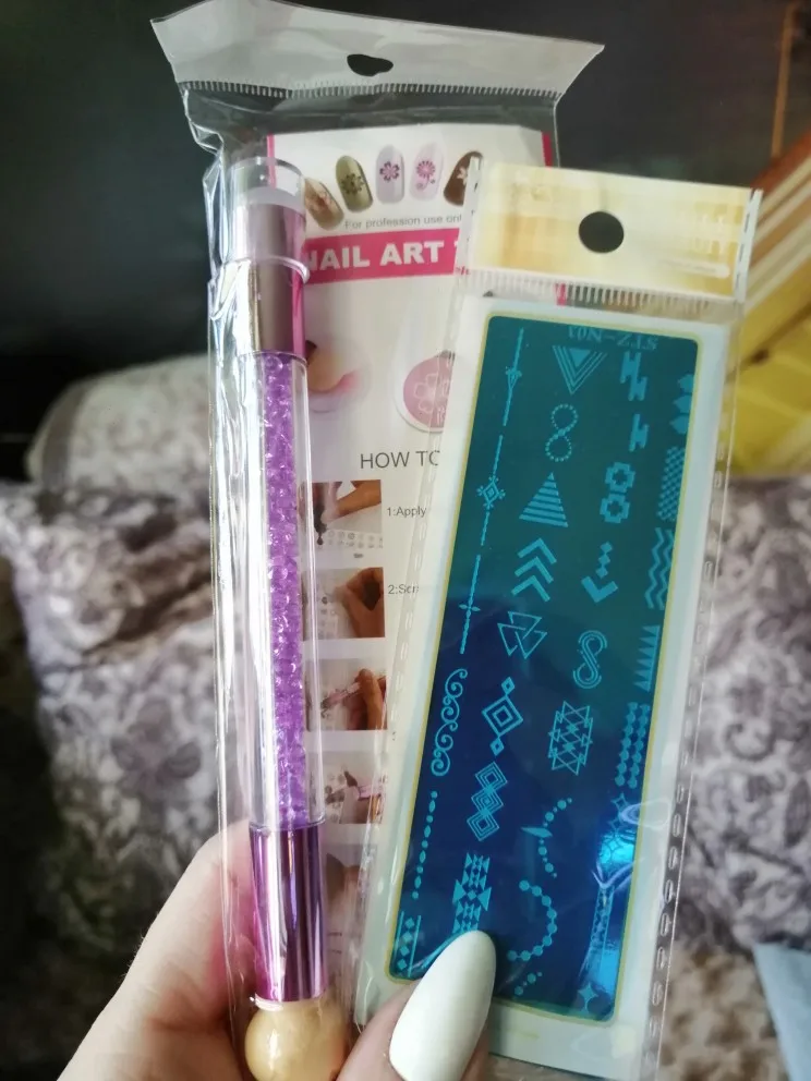 Выглядит все хорошо, пришло всё целое. стала делать маникюр и у меня ничего сначала не получалось, (оказывается нужны какие то специальные лаки ), я расстроилась, но вскоре оказалось , что все дело в этой силиконовой штуке (штампе), которой переносится рисунок , изначально как только я открыла посылку она была безукоризненно гладкой, а для того чтобы отпечатывался рисунок , поверхность должна быть неровной, поэтому перед применением советую силиконовую часть потереть об что нибудь , если вы пользуетесь гель-лаками. Так же когда снимала колпачок с палочки у меня открылся случайно отсек с алмазиками, этого не должно было произойти , но наверное я сама виновата. Узоры на ногтях выглядят здорово (для первого раза неплохо)!