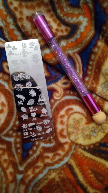 Пришло очень быстро несмотря на то что сейчас пандемия. Пуф не помялся несмотря на то что упаковка не очень защищающая, но может быть мне просто повезло. Рисунки на пластине очень качественно пропечатаны, вот только силиконовый стемпинг на другом конце для некоторых рисунков слишком маленький, так что имейте в виду.