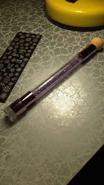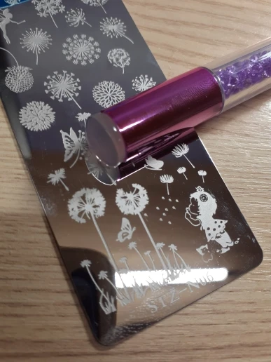 Пластина нормальная, как и в описании, пуф приехал целый, не помялся, очень красивый. Штампик сбоку имеет заусенцы, влияет только на внешний вид, на функционал не влияет. Единственное, что при повторном открытии колпачка штампа отпало все крепление и половина блёсток рассыпалось по полу =(( Обидненько, но опять же функционал не пострадал, а это все уже приклеено. Пришел товар за месяц, с продавцом не общалась.