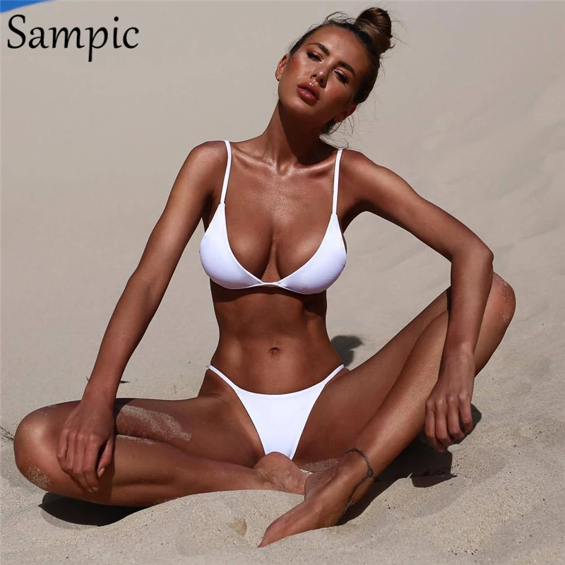 Купальник Sampic Женский, пуш-ап, белый, черный, красный, 2020