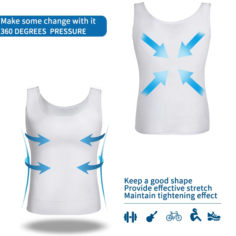 Созданы для ношения под любыми видами одежды, такими как рубашки для тренировок, футболки, свитера и официальные рубашки. Формирователь тела утягивающая, компрессионная-это секрет между вами и вашей одеждой. Прорыв сплющивания груди! Это отличная компрессионная рубашка-гинекомастия или "мужские сиськи" для мужчины, который хочет насладиться здоровым видом фигуры без необходимости хирургии или лекарств.