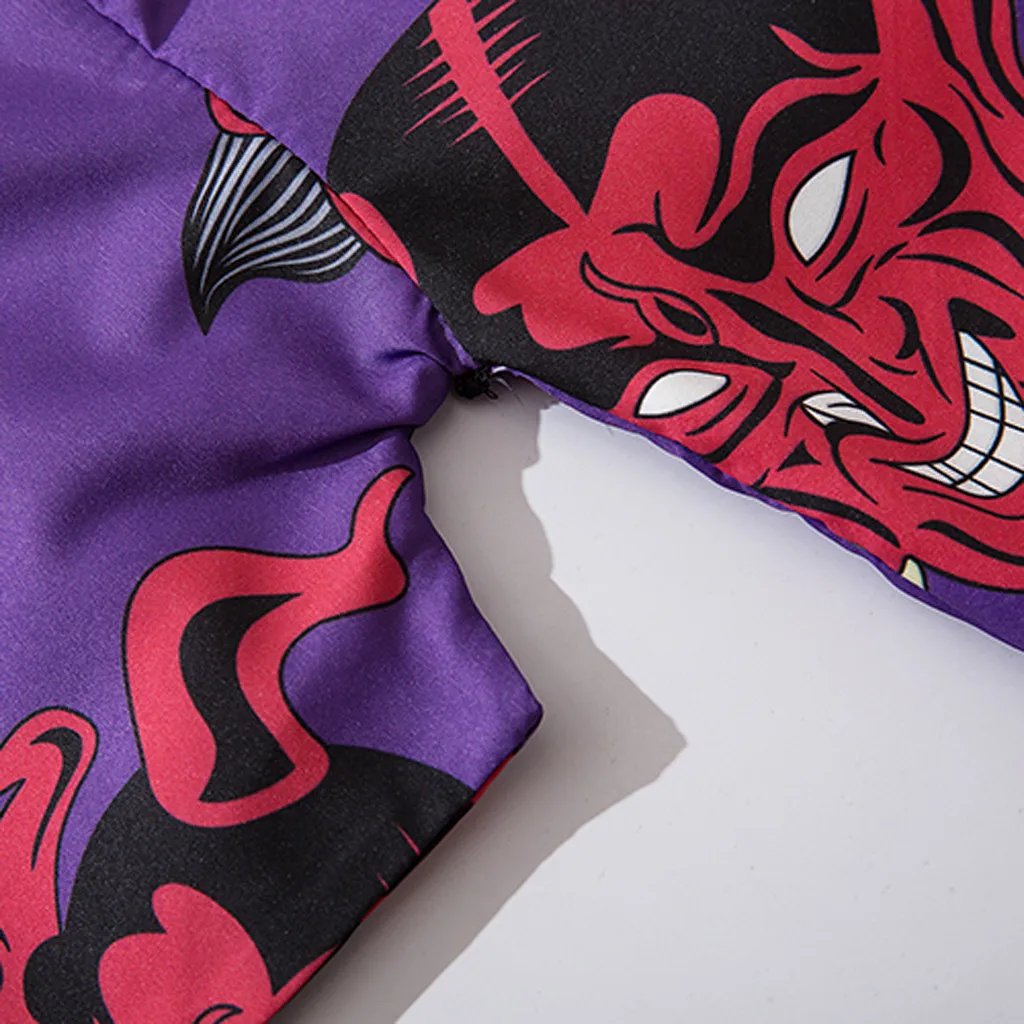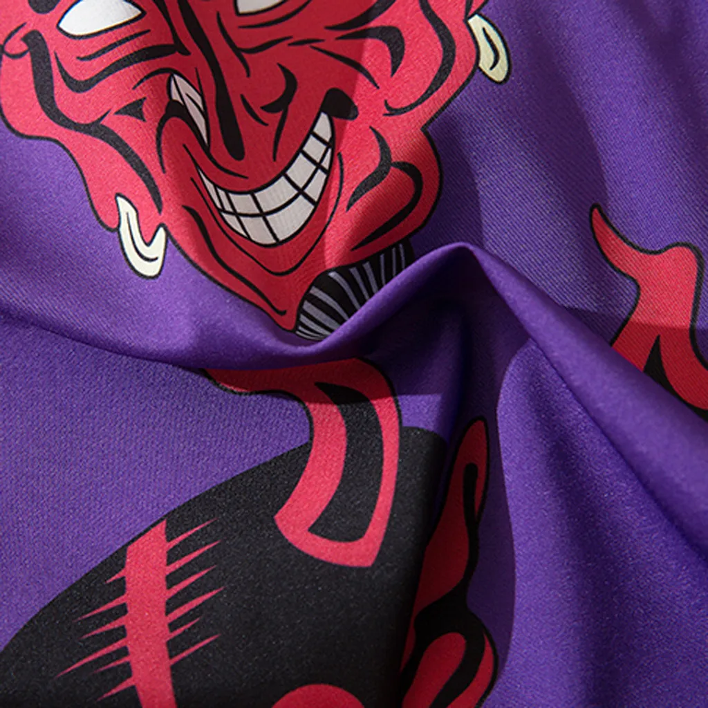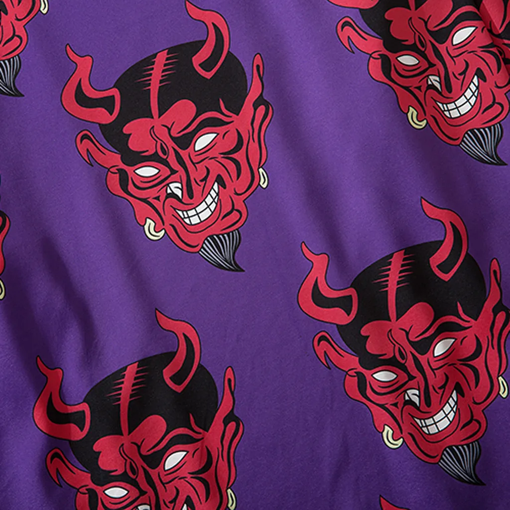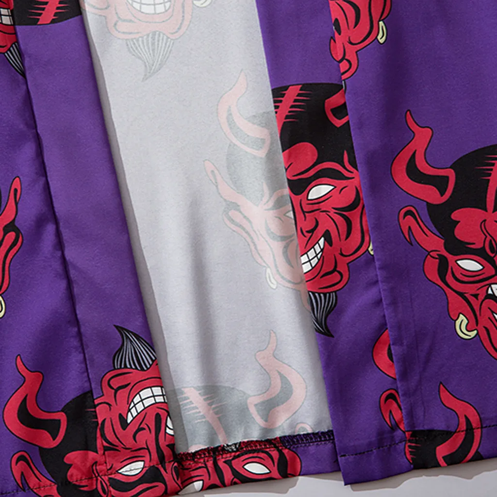 Японская уличная одежда с пятиконечной кимоно с рукавами, летняя свободная гавайская рубашка в стиле Харадзюку с принтом дьявола, Корейская одежда