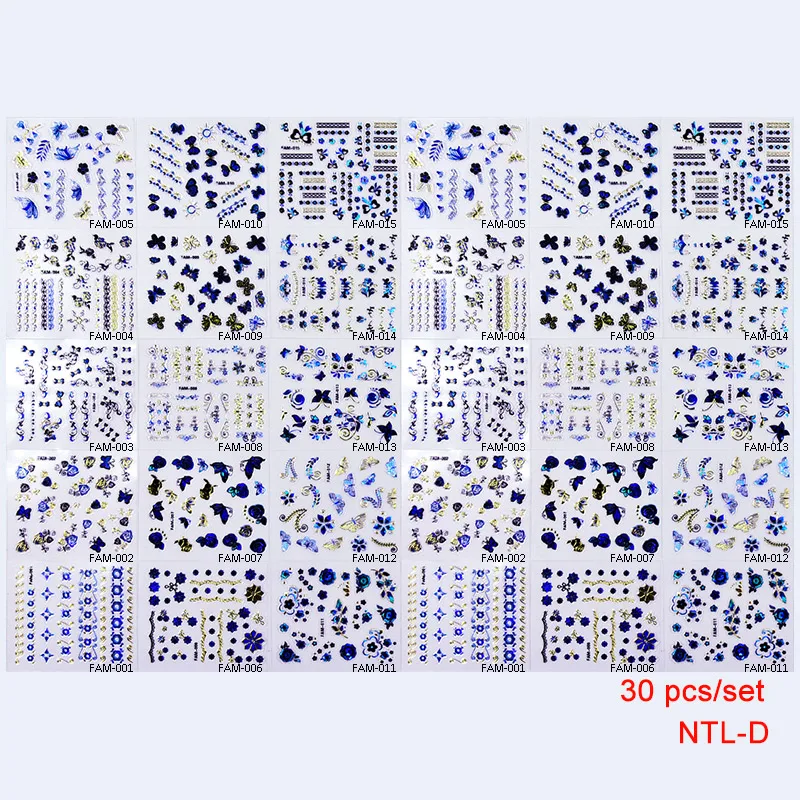 Содержимое упаковки:30 листов/Набор ногтей 3D наклейки