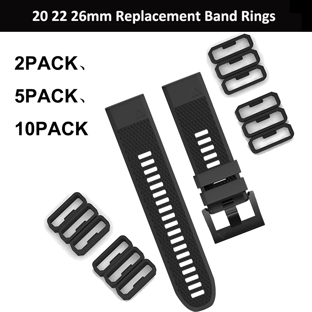 10pcs Black Rubber Clasp Keeper Ring Holder Loop Fastener Replacement for Garmin Fenix 6 6S 6X 5 5X 5S Plus/3/3HR Smart Watch