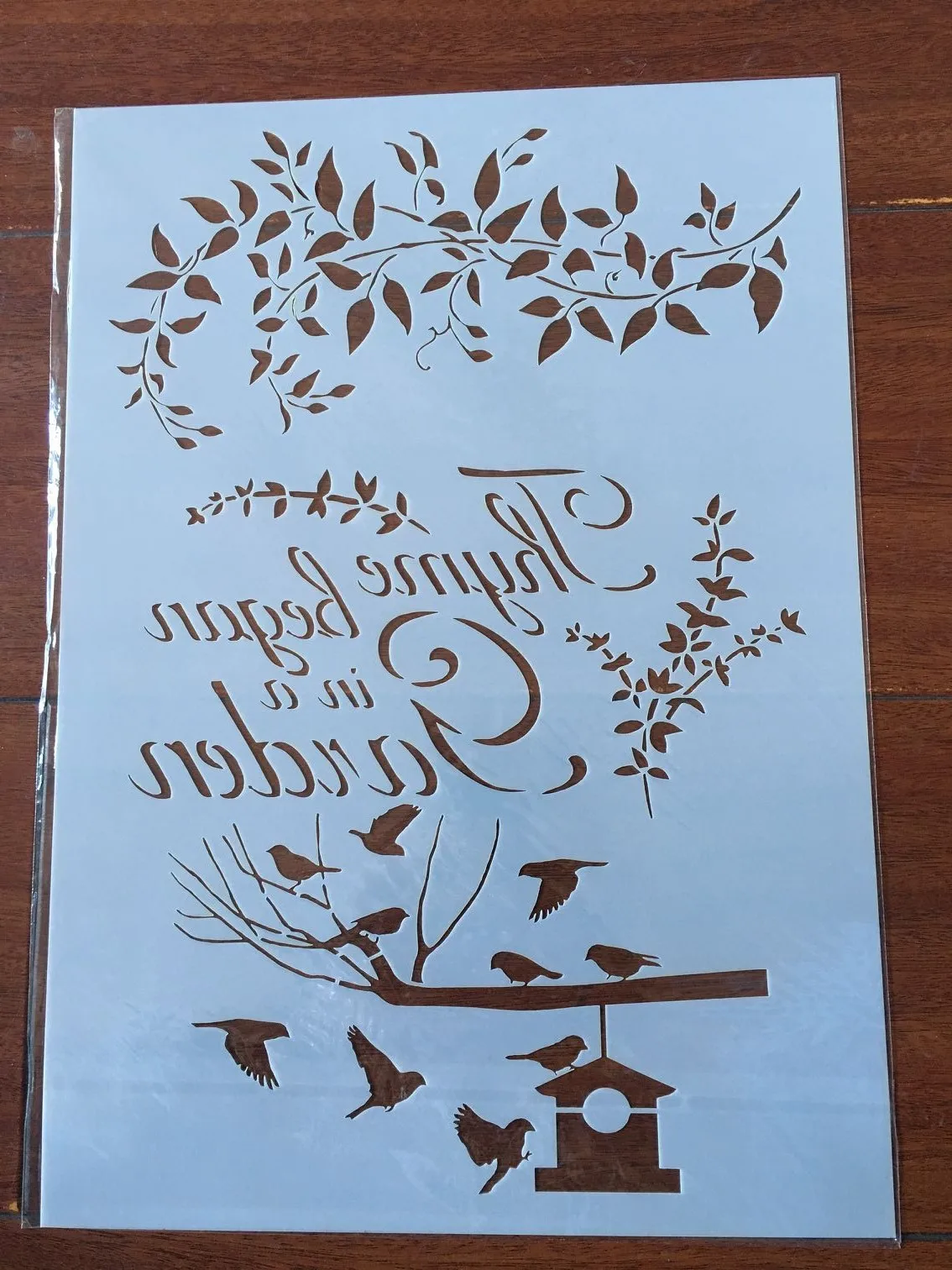 A4 29*21 см листья птицы DIY трафареты настенная живопись раскраска...