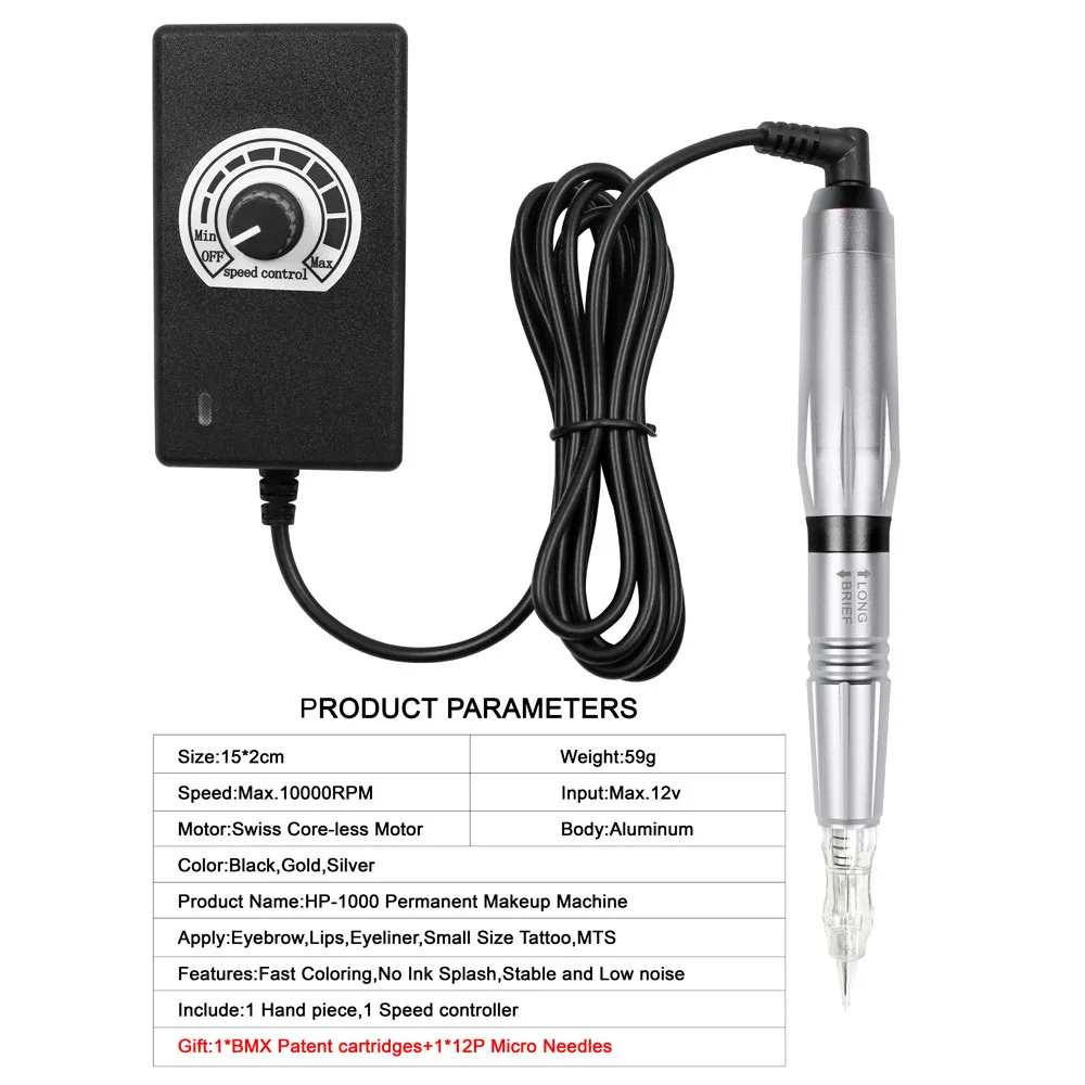 1 швейцарская роторная Перманентная машина для макияжа ручка1 по всему миру Регулируемый адаптер питанияИгла для картриджа с 3 винтами
