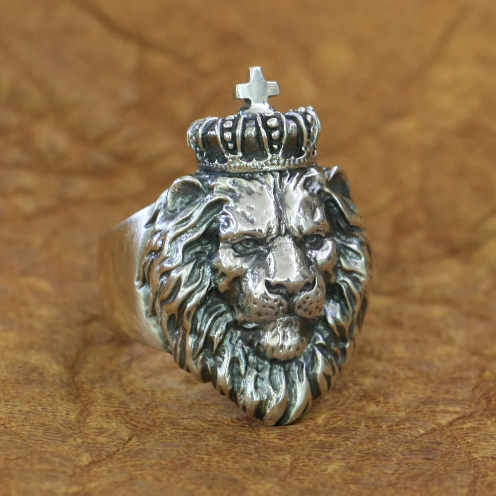 LINSION 925 пробы Серебряное кольцо в виде короля льва мужское байкерское кольцо в стиле панк с животным TA190 американский размер 7 15