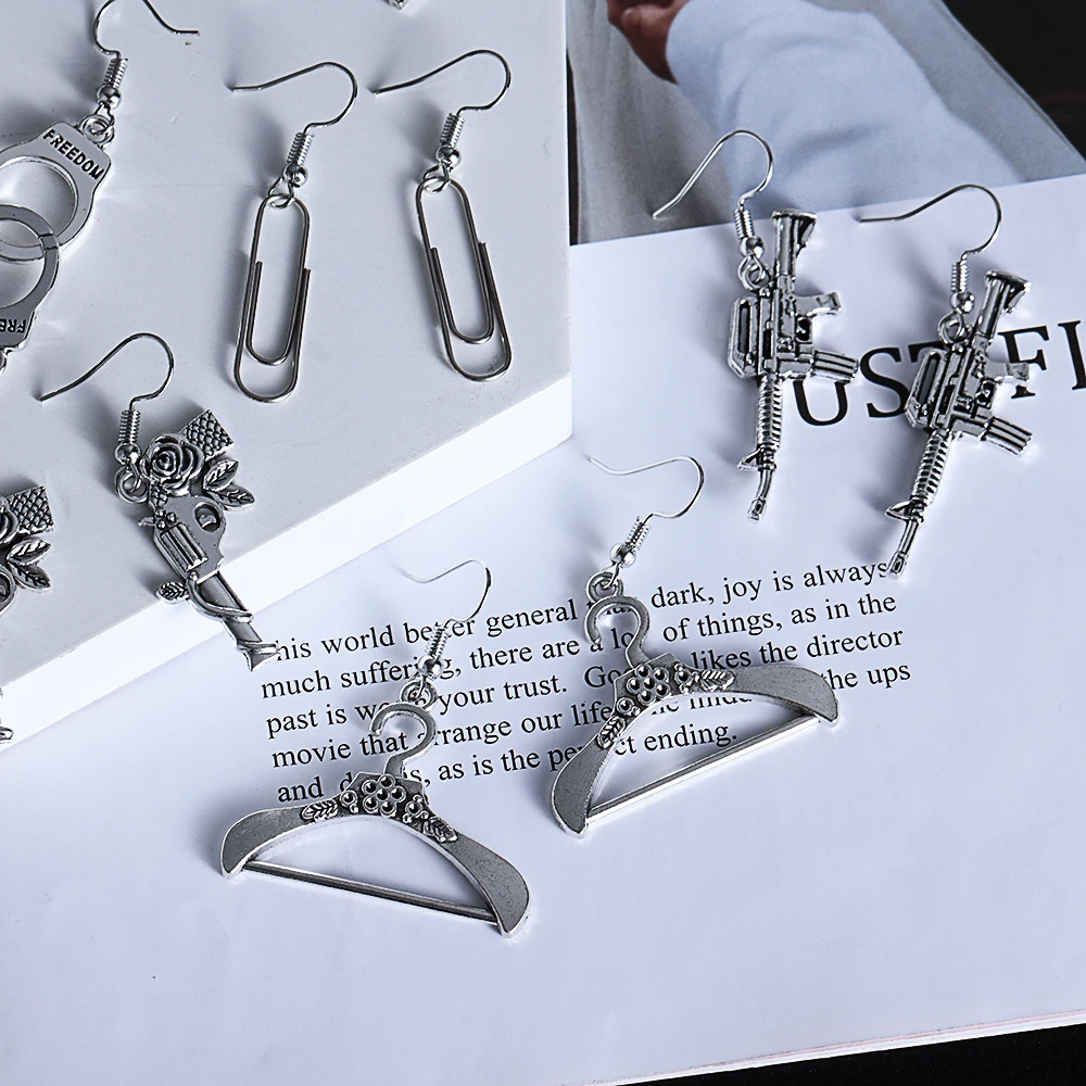 1 пара серег в стиле Панк Наручники лезвие пистолет висячие серьги ...