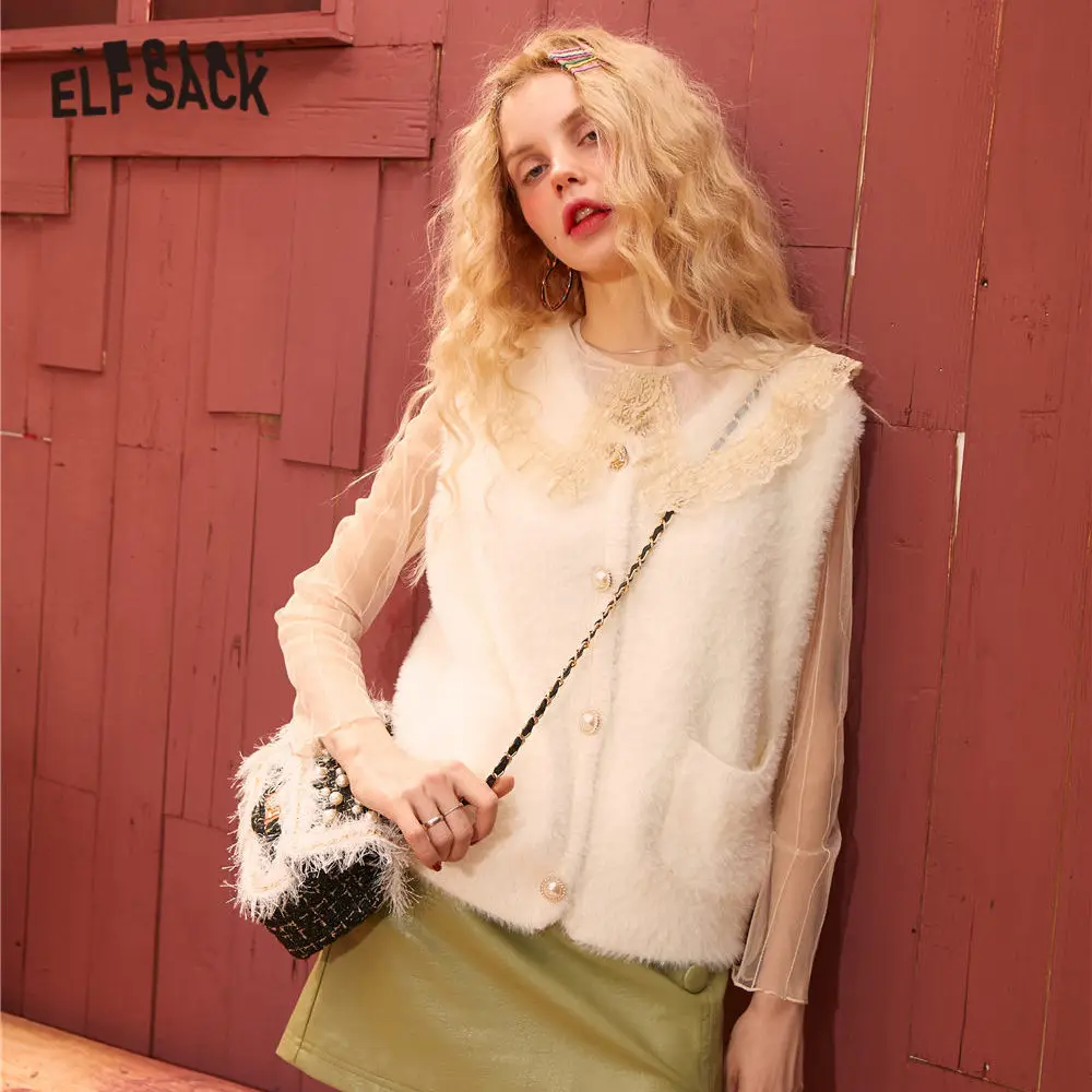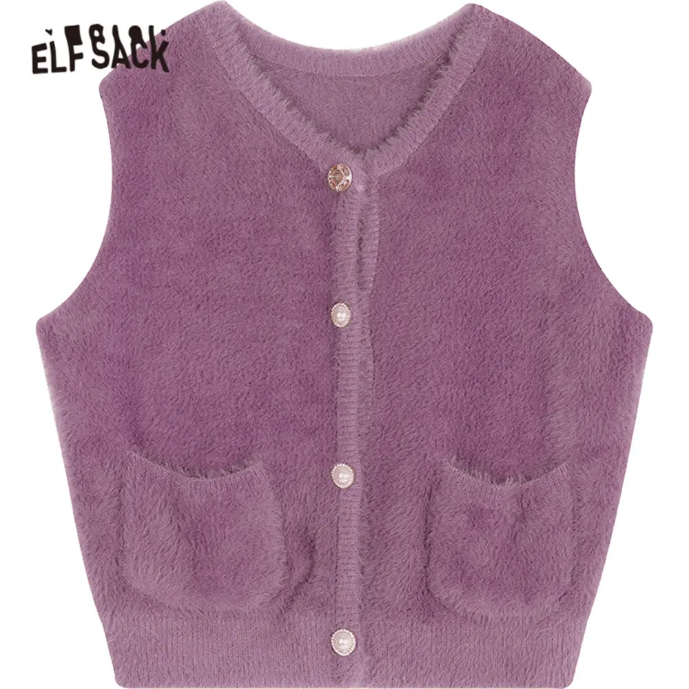 Женский однотонный бархатный жилет ELFSACK, однотонный Повседневный свитер с одним жемчугом, вязаный базовый топ без рукавов, весна 2020