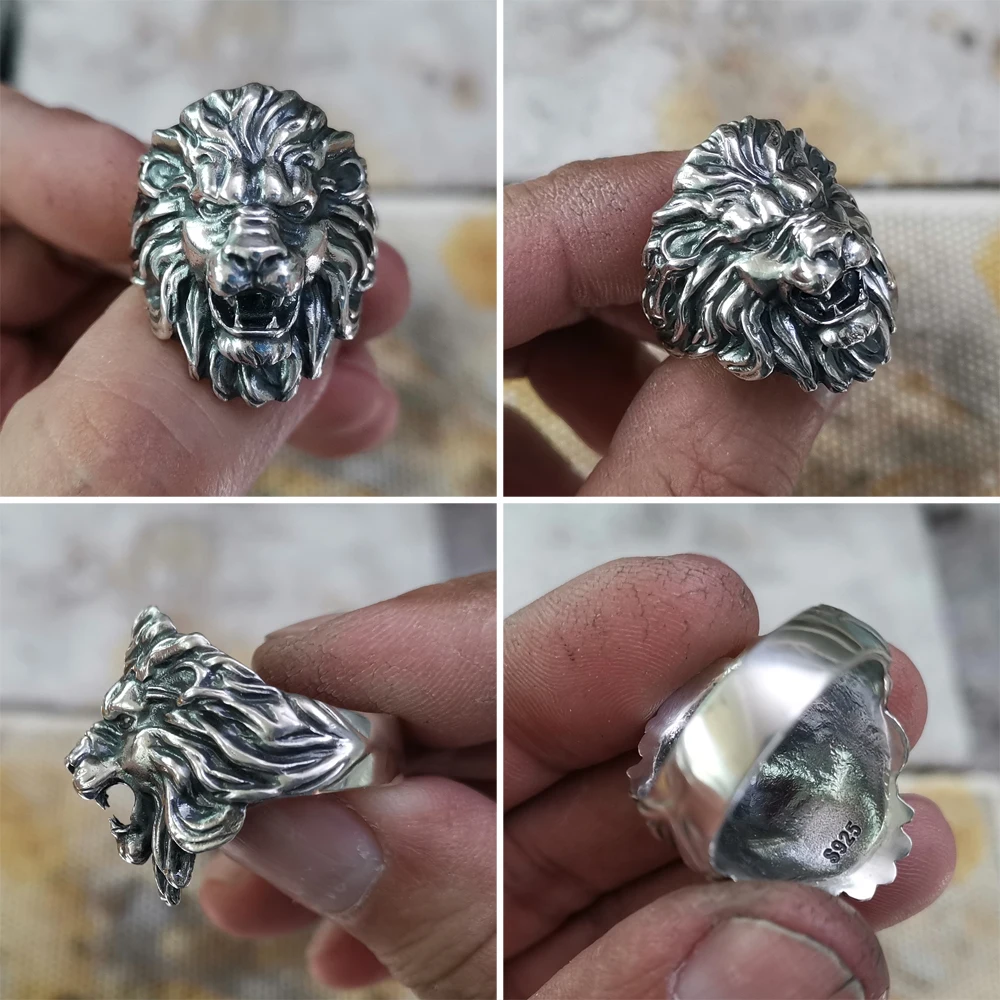 LINSION 925 пробы Серебряное кольцо в виде короля льва мужское байкерское кольцо в стиле рок панк TA191 американский размер 7 15