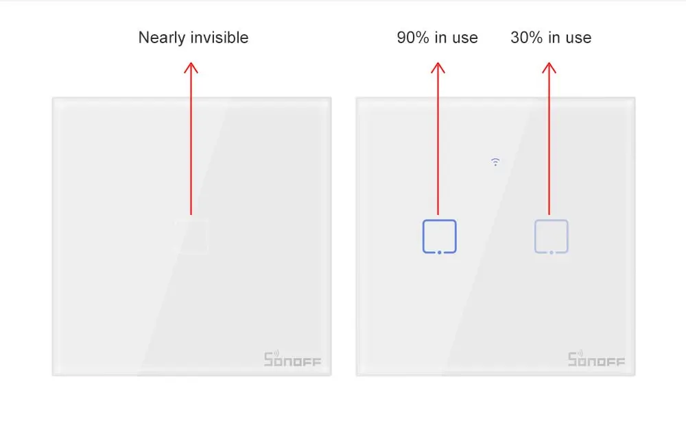 Чувствительные сенсорные кнопки почти незаметны, когда они не установлены, и в 90% яркости в использовании и 30% яркости в режиме ожидания. Легко найти, но меньше беспокоится ночью