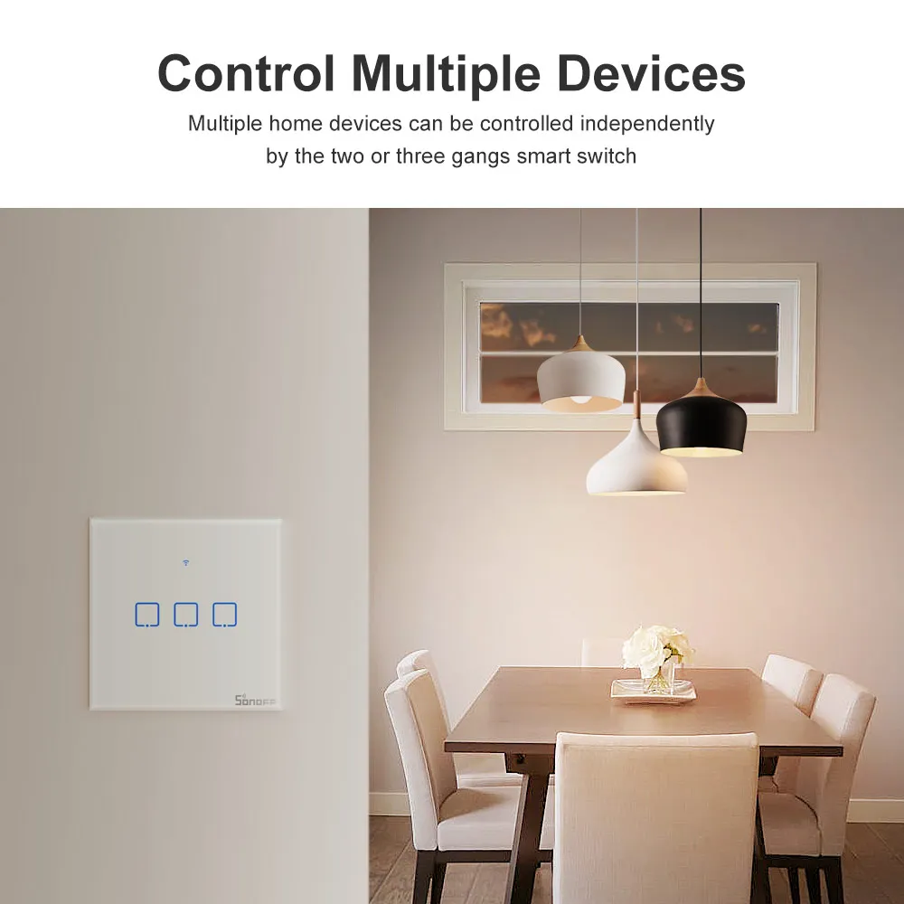 Умный настенный выключатель SONOFF T0 UK Wifi можно управлять удаленно с помощью телефона, а устройства, подключенные к переключателям, могут работать независимо.Работает с Amazon Alexa и Google Assistant, который позволяет включать или выключать ваши устройства с голосовой командой, идеально подходит для тех, кто должен обрабатывать много домашней работы одновременно.Небольшой кран для более легкого управления. Установите время для устройств, и переключатели помогут вам включить или выключить их автоматически. Портной смарт-сцена для ваших приборов. Просто установите событие, чтобы вызвать одно устройство SONOFF или группы устройств с помощью нажатия на вашем телефоне.Ваши устройства не будут работать из-за аномальной сети Wi-Fi, управление локальной сети, следовательно, разработано, чтобы убедиться, что они могут нормально работать.