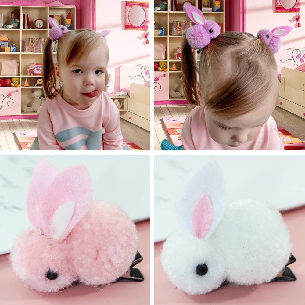 Заколка для волос в Корейском стиле с шариками, 1 шт., простой заколка для волос с кроликом для девочек, плюшевый кролик с ушами, милые детские головные уборы