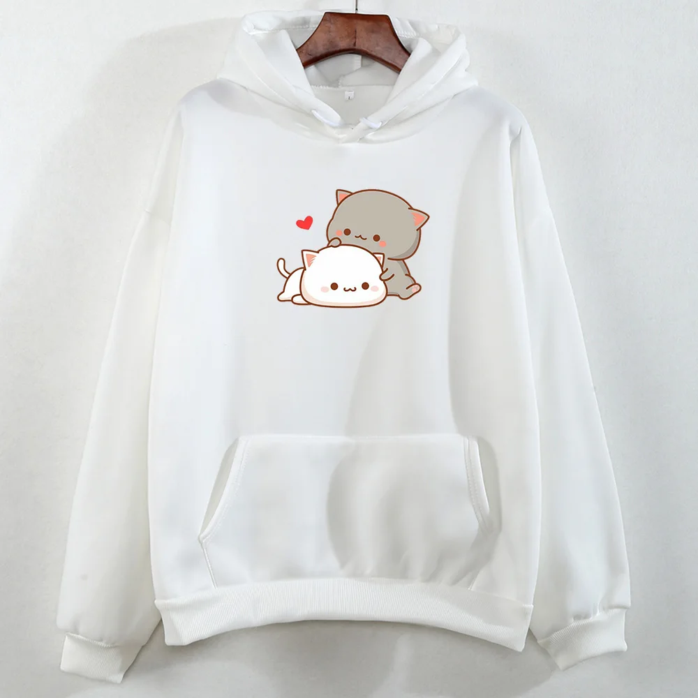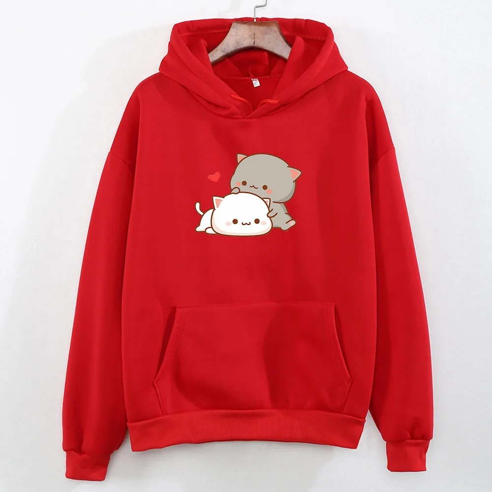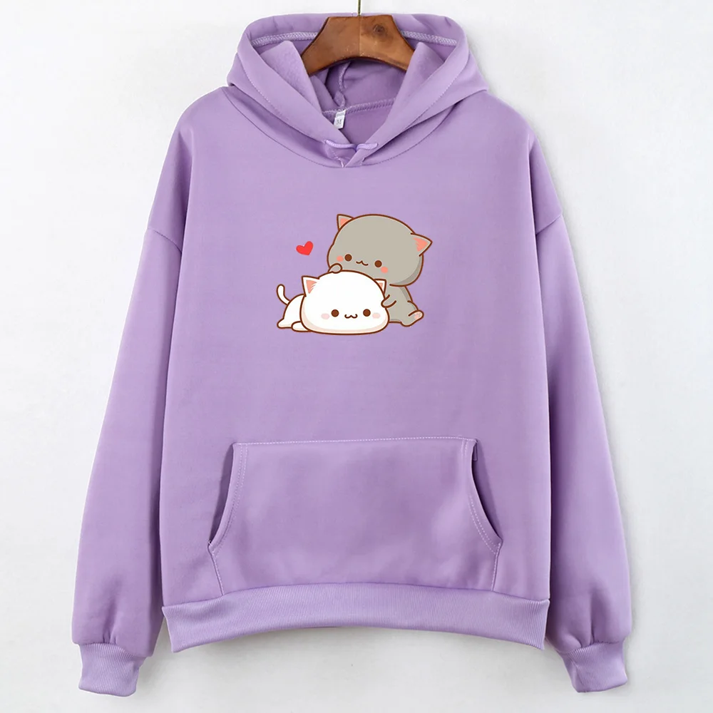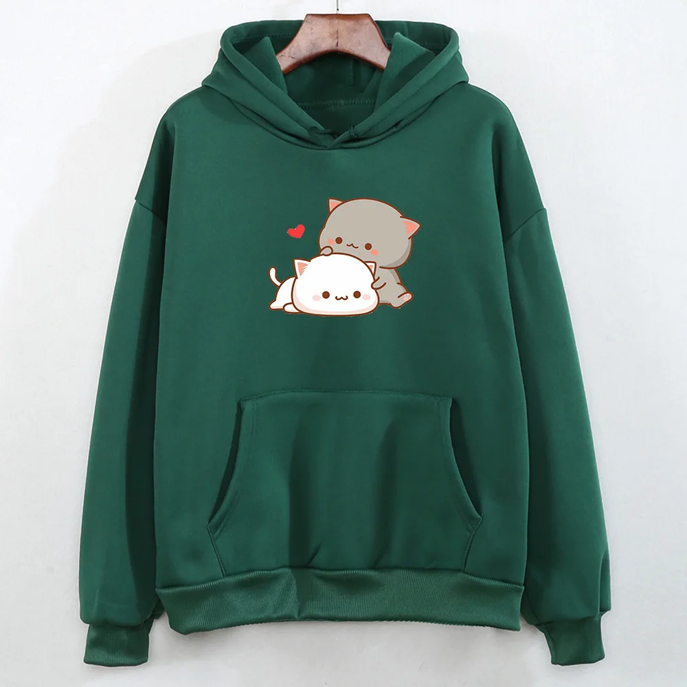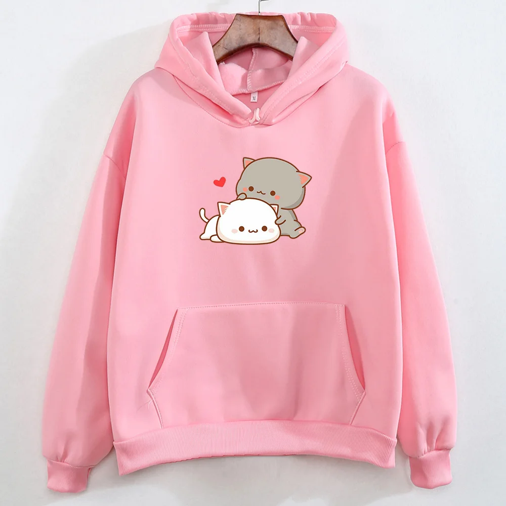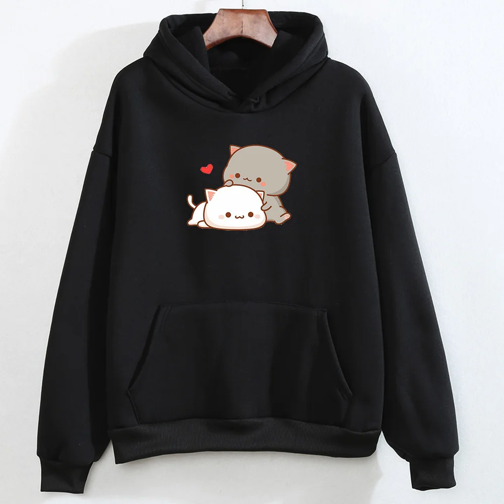 Кавайный принт с кошкой в форме сердца, толстое хлопковое пальто, худи для женщин, Harajuku Kpop, пуловер, свитшоты для девушек, Милая женская одежда