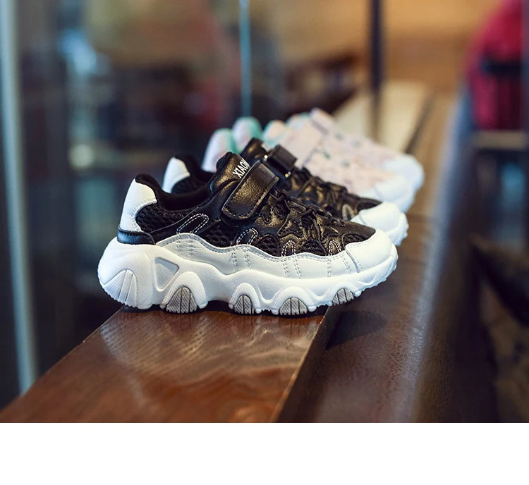 Весенние детские спортивные кроссовки, черные кроссовки для мальчиков, Детские сетчатые кроссовки на массивной подошве, Брендовые повседневные кроссовки для маленьких девочек, кроссовки 2020