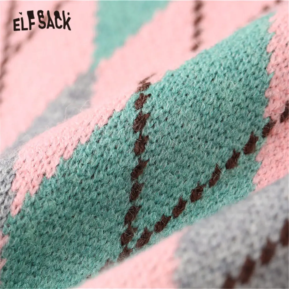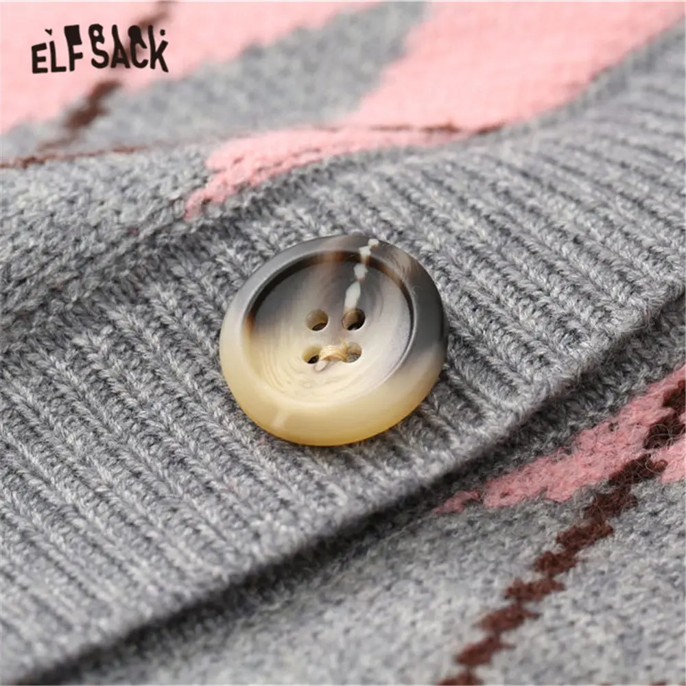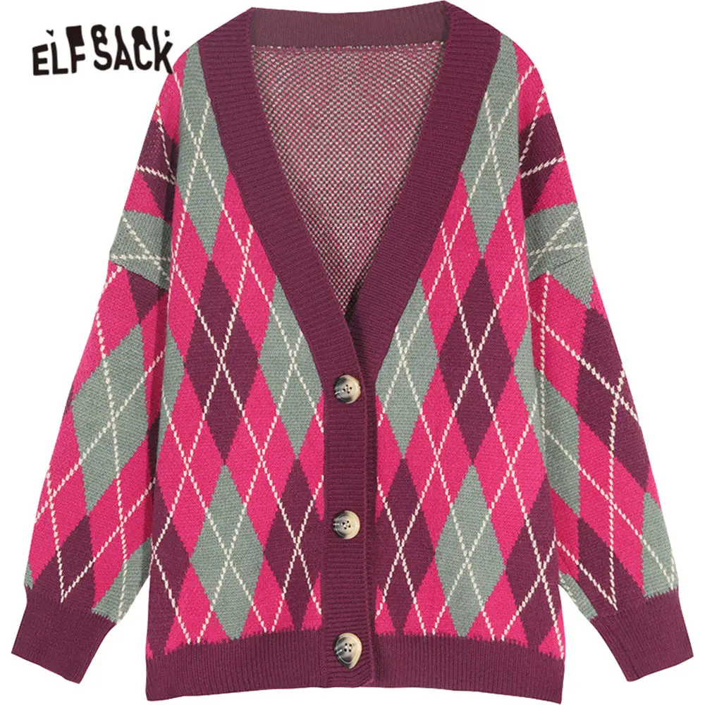 Женский кардиган ELFSACK, красный кардиган оверсайз с узором ромбиками, с длинными рукавами, на одной пуговице, весенний, 2020